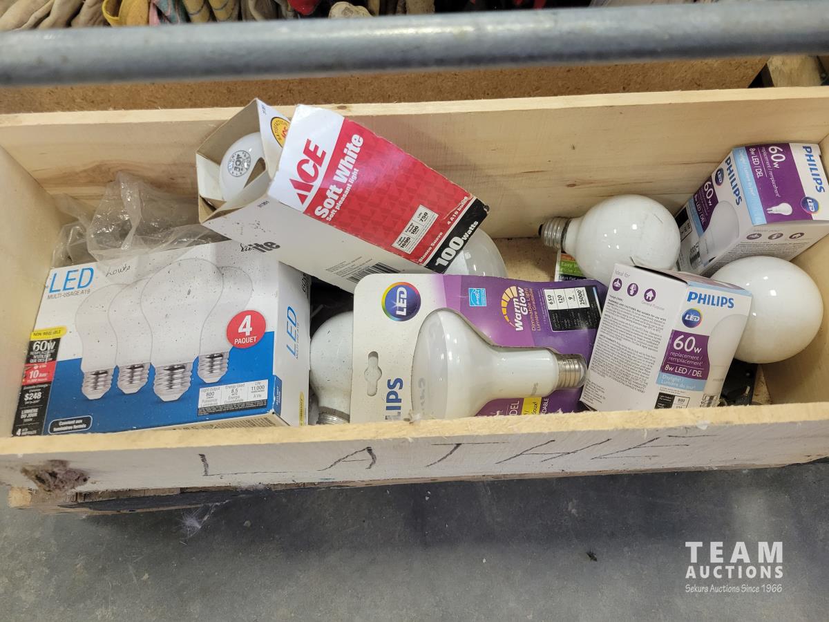 Ratchet straps, work gloves, light bulbs