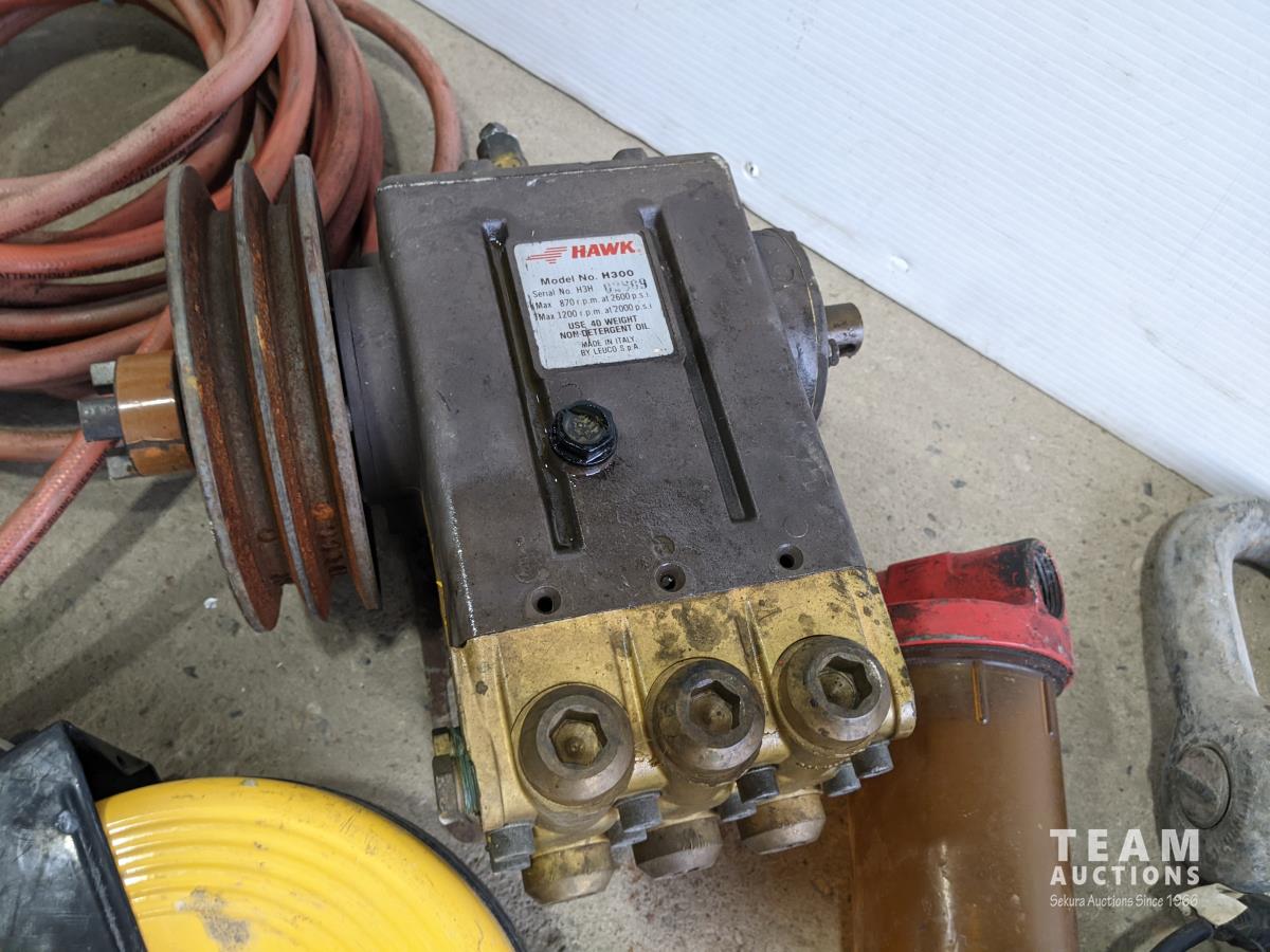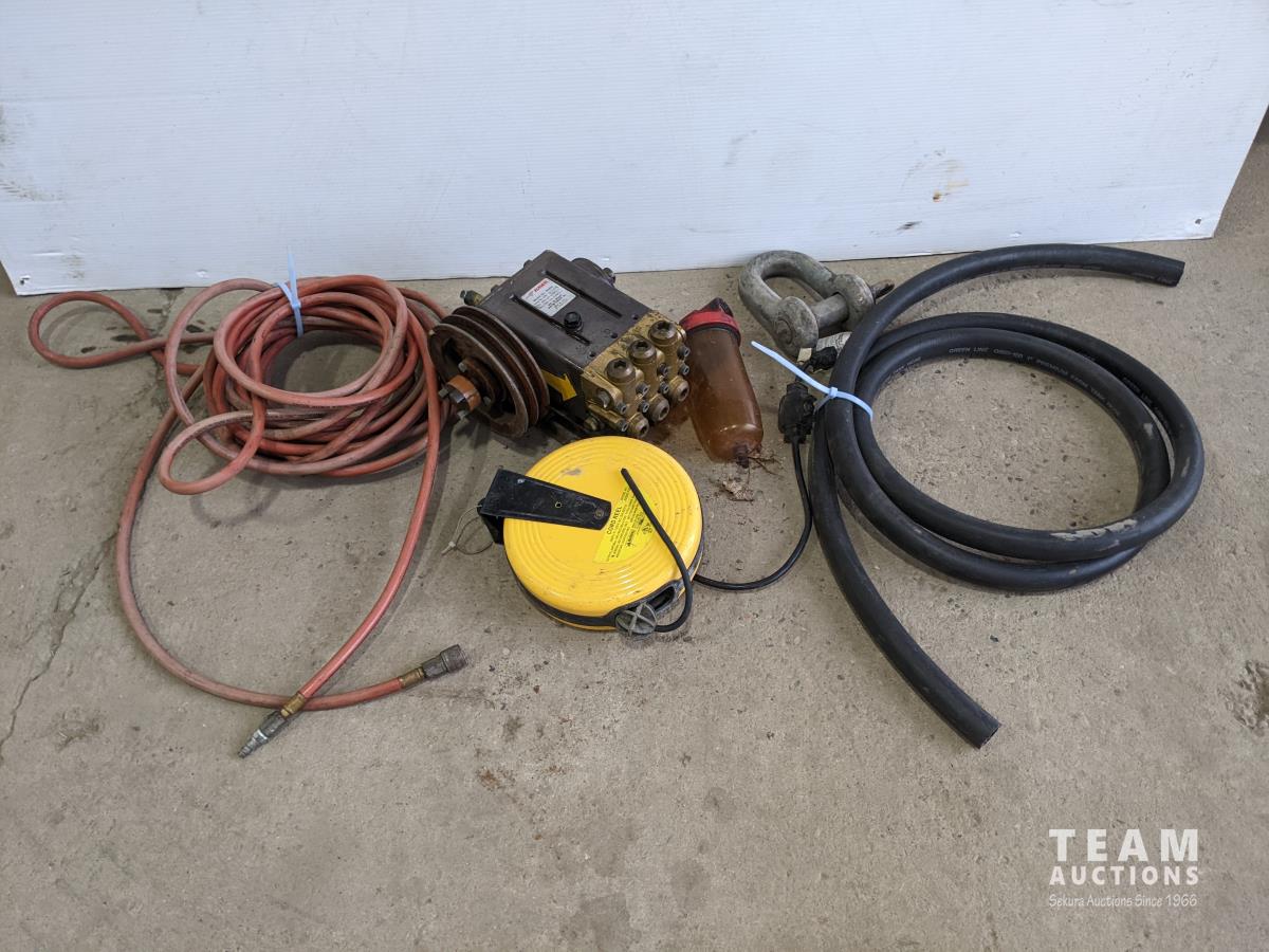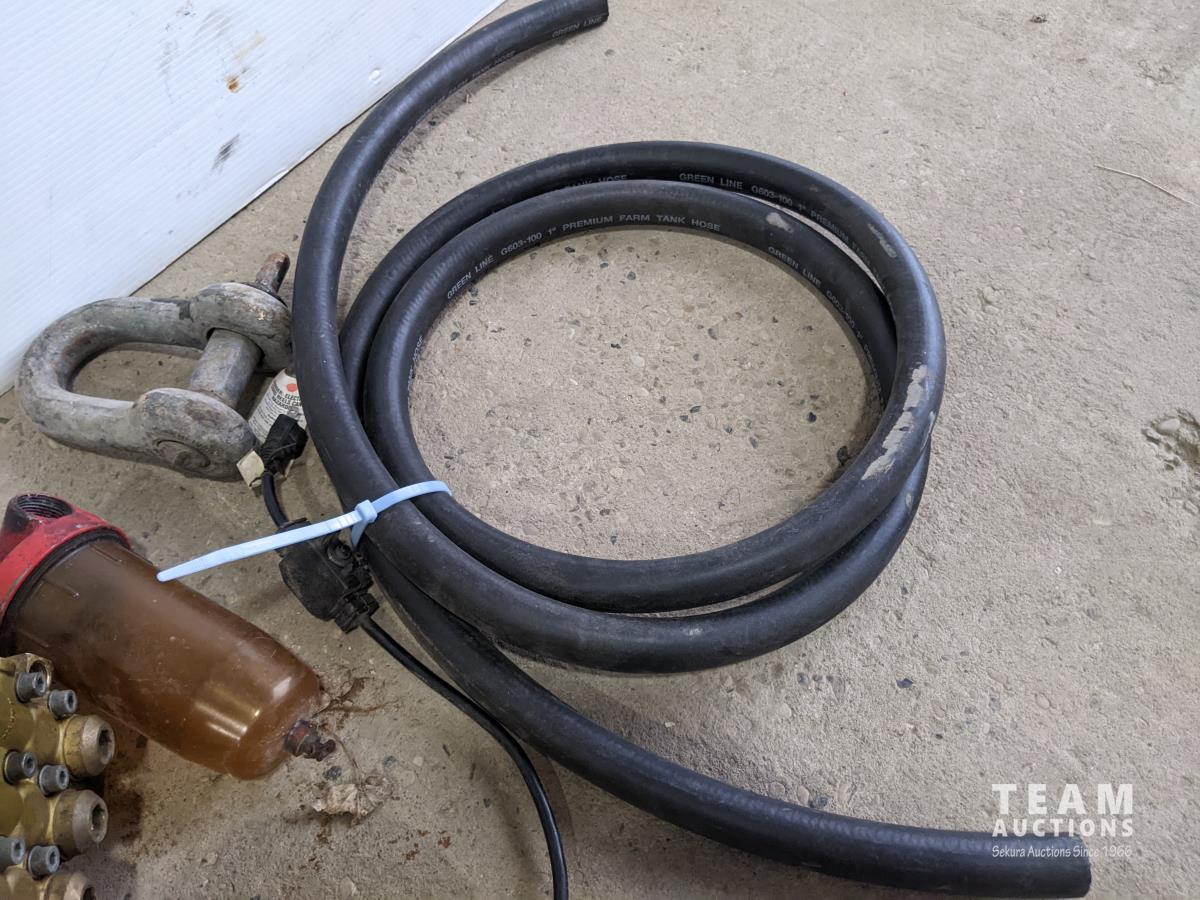 Hawk hydraulic bank with aux pully, airline, 1 inch farm tank hose, cord reel, fuel water separator and large clevis
