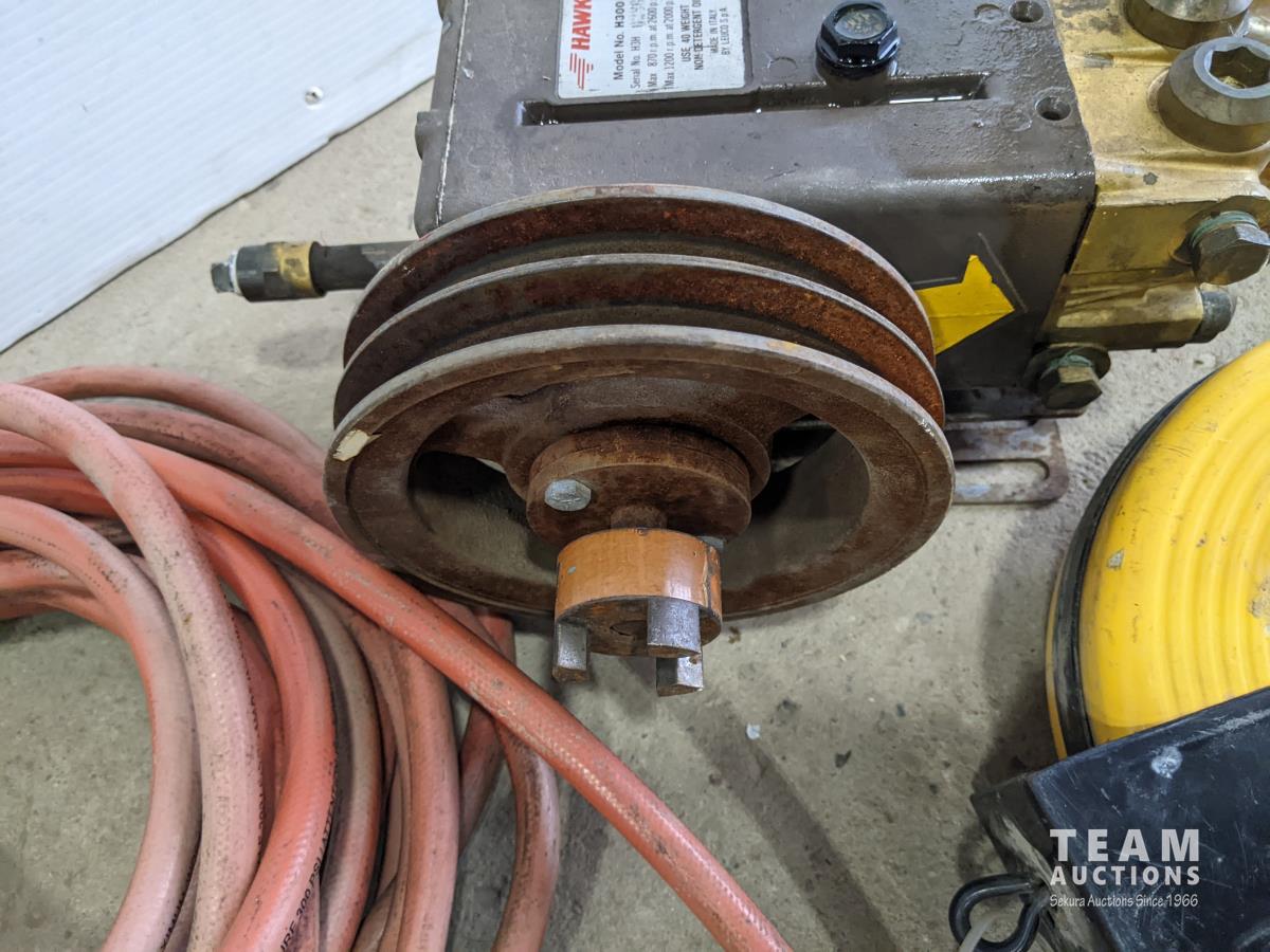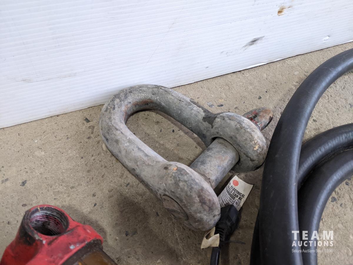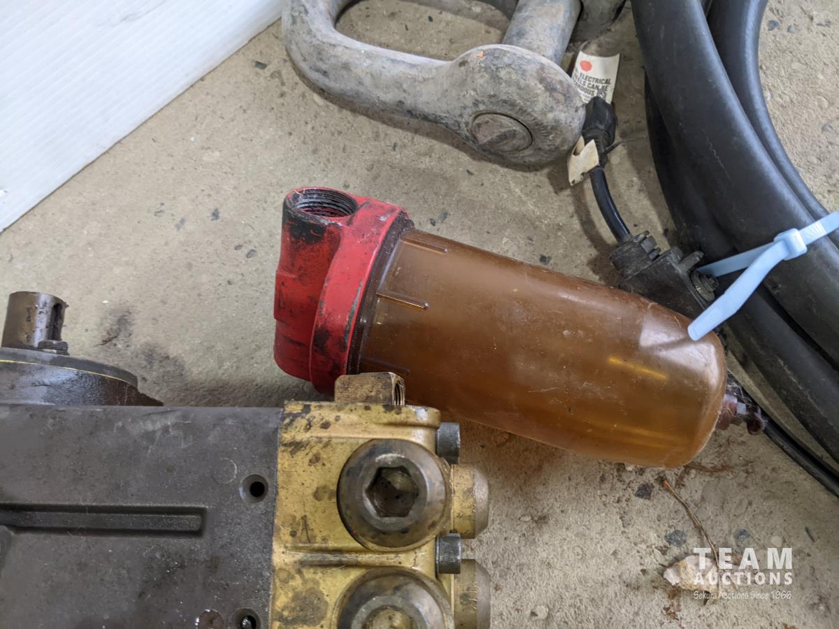 Hawk hydraulic bank with aux pully, airline, 1 inch farm tank hose, cord reel, fuel water separator and large clevis