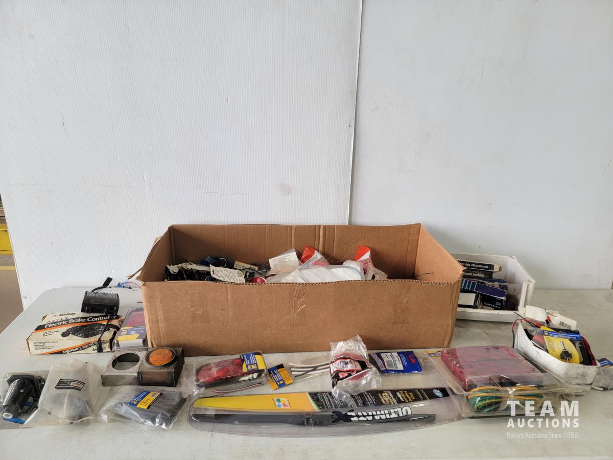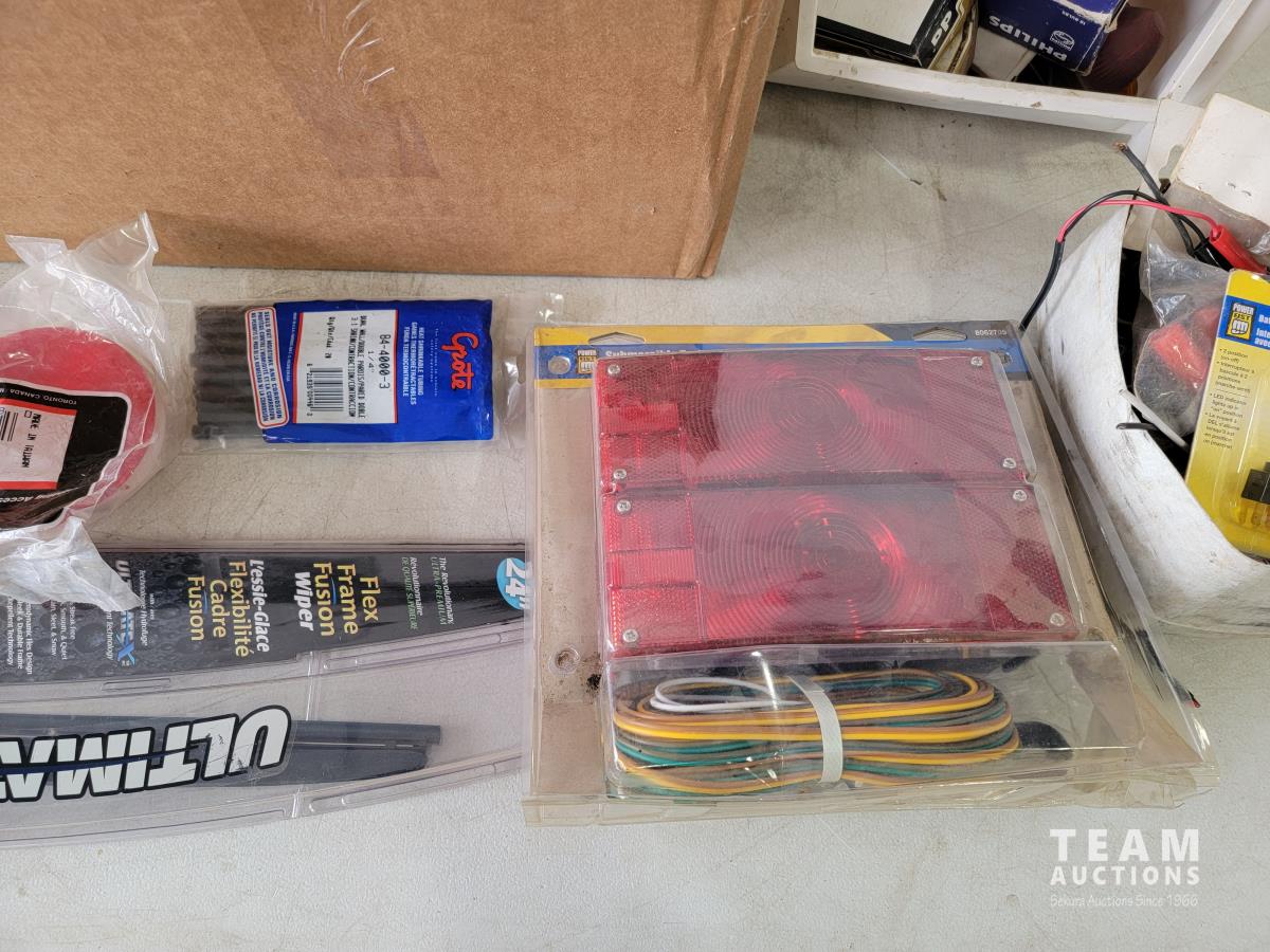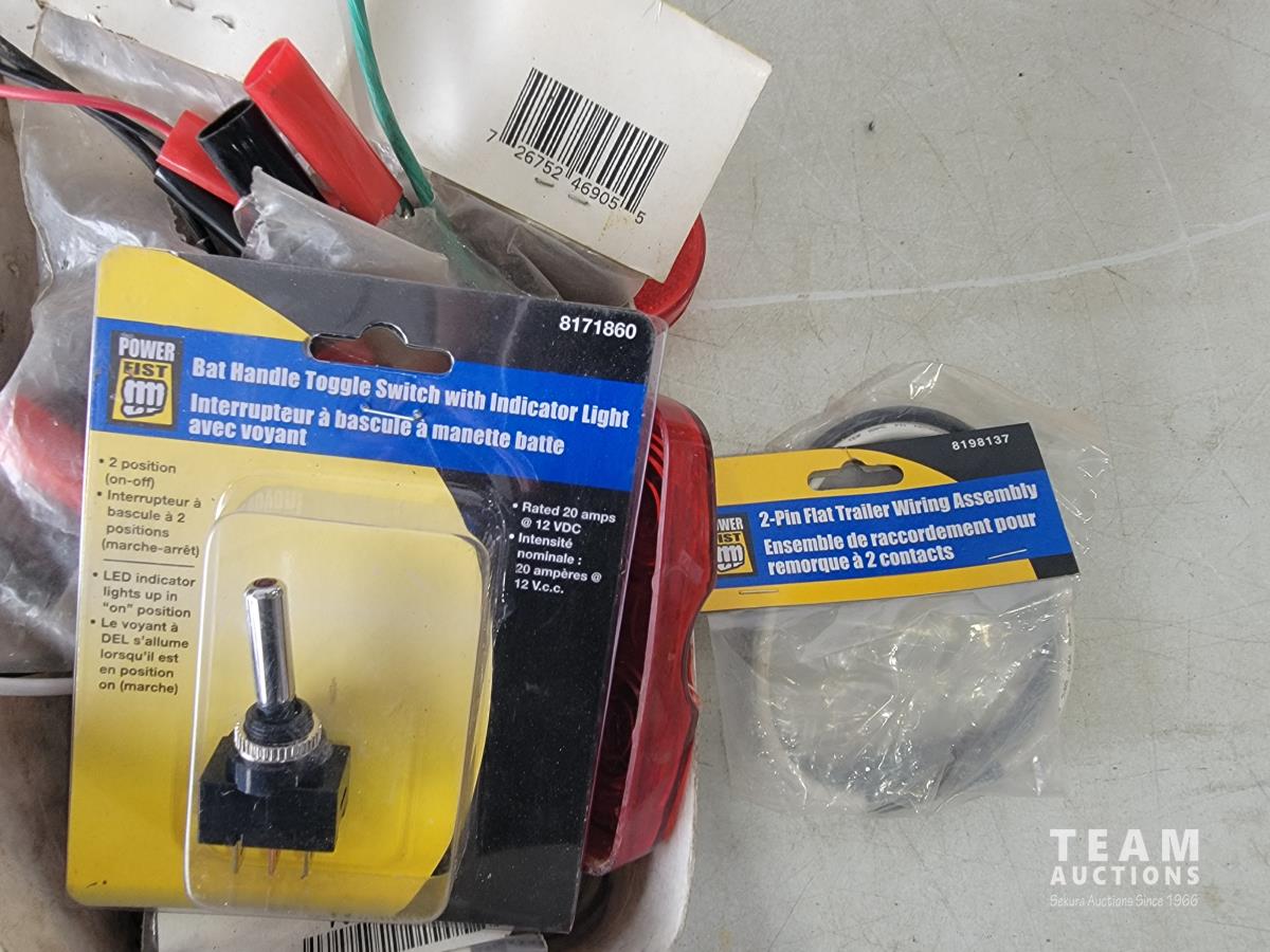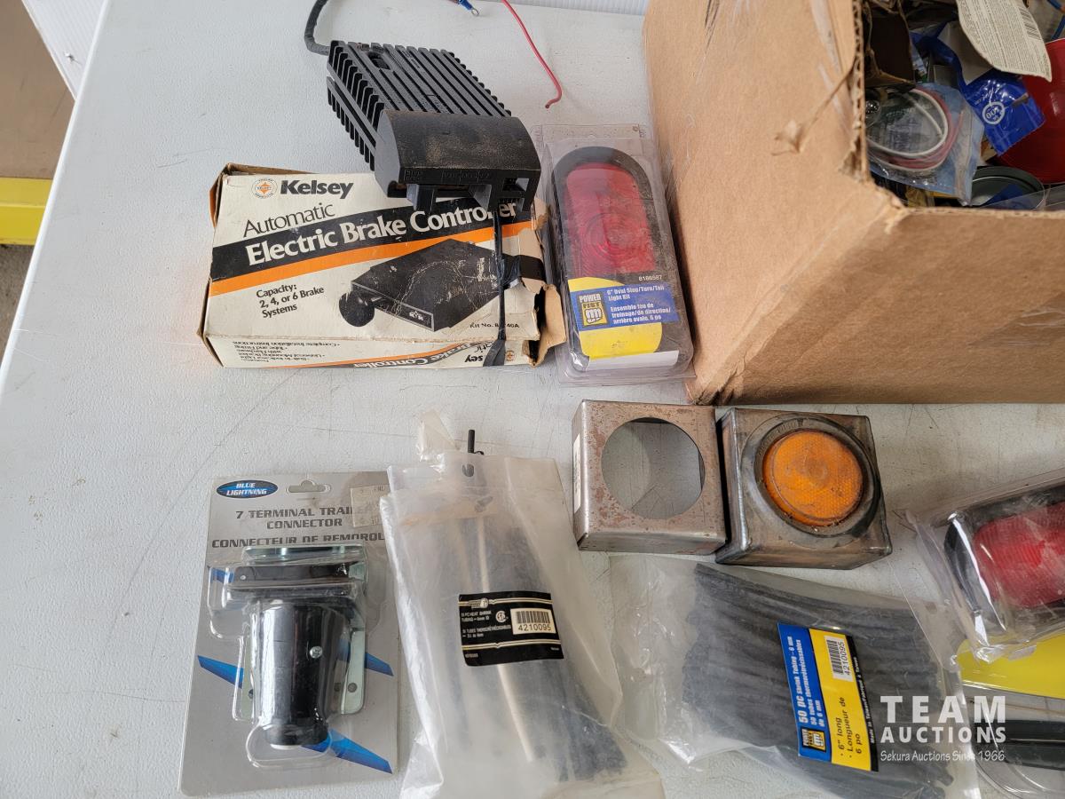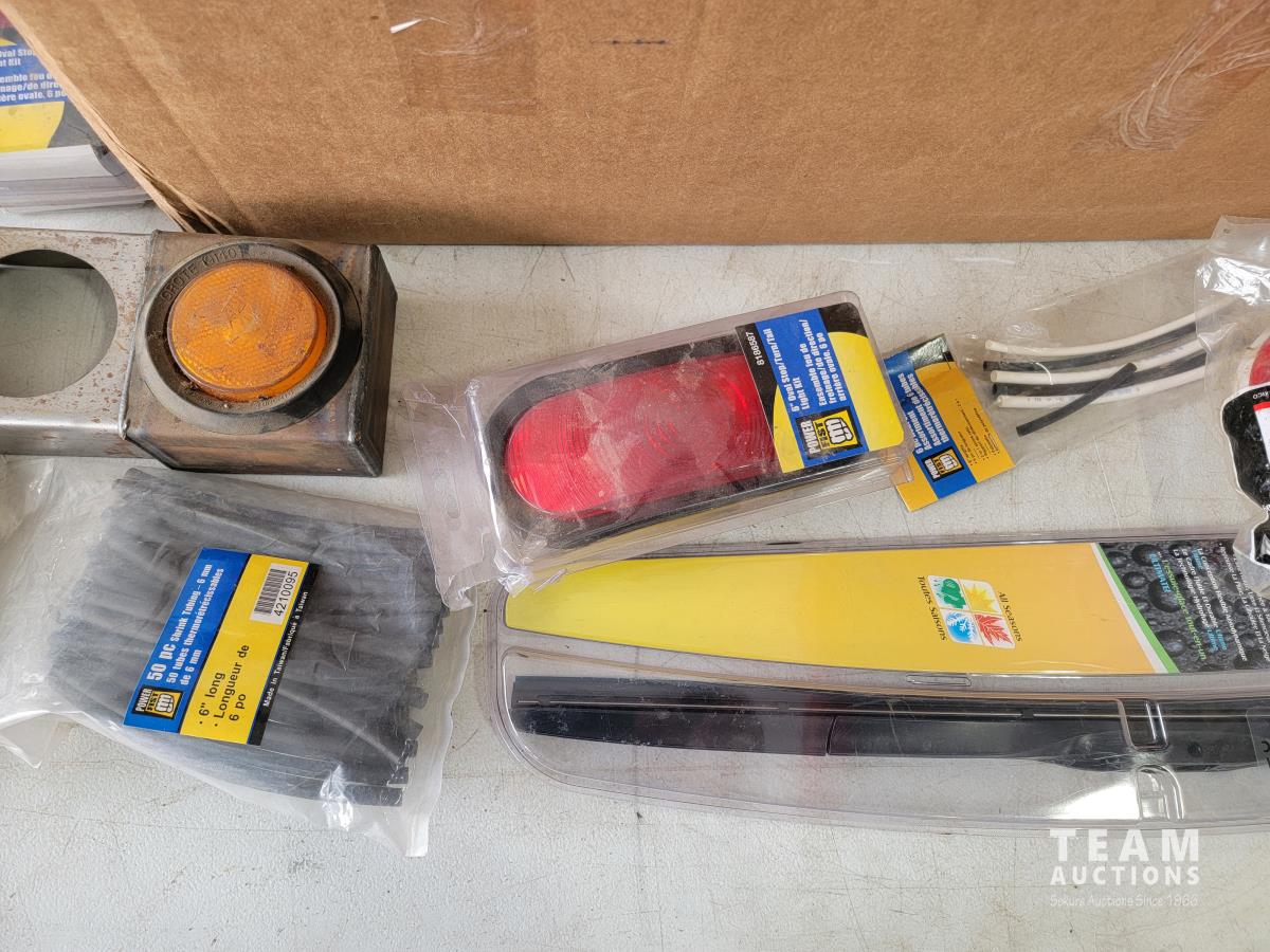 1041 Qty of Trailer Lights and Accessories, Trailer Wiring Assembly, Automotive Light Bulbs and Connector