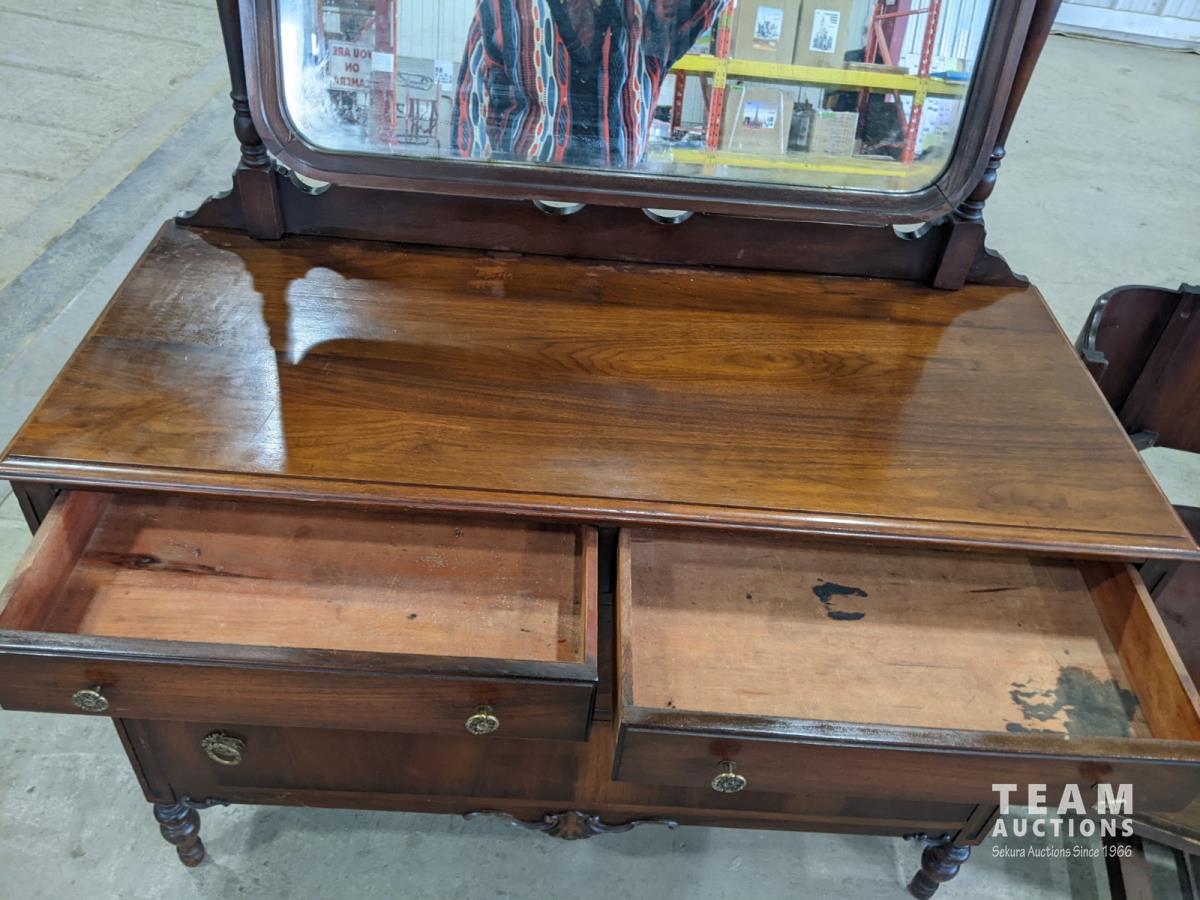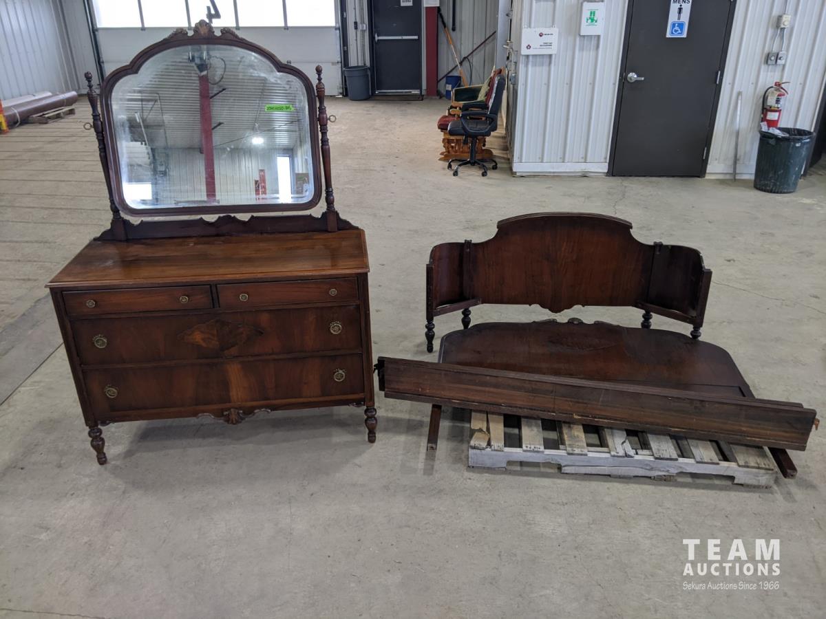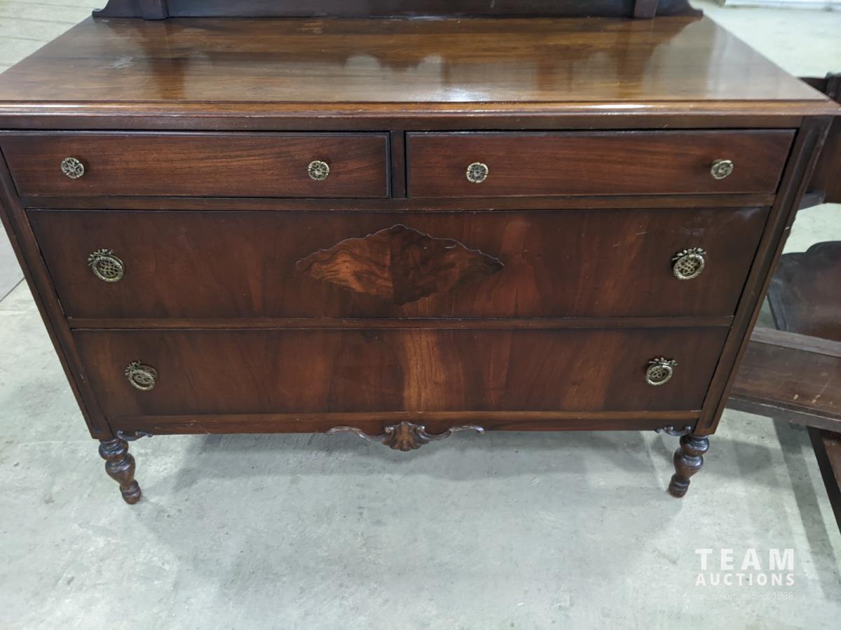 1256 Vintage Peppler Bros Walnut Dresser with Matching Bed Frame