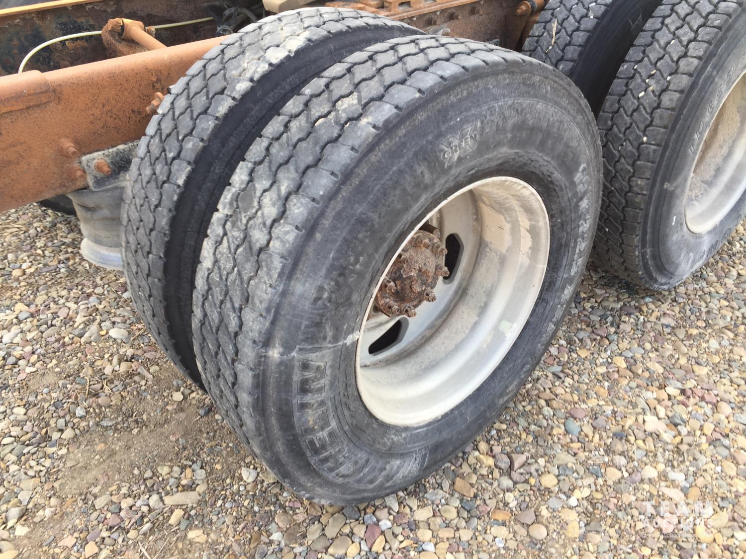 no engine or transmission, air ride suspension, 12,350 lb front axle, 40,000 lb rear axles, diff lock, 11R22.5 tires