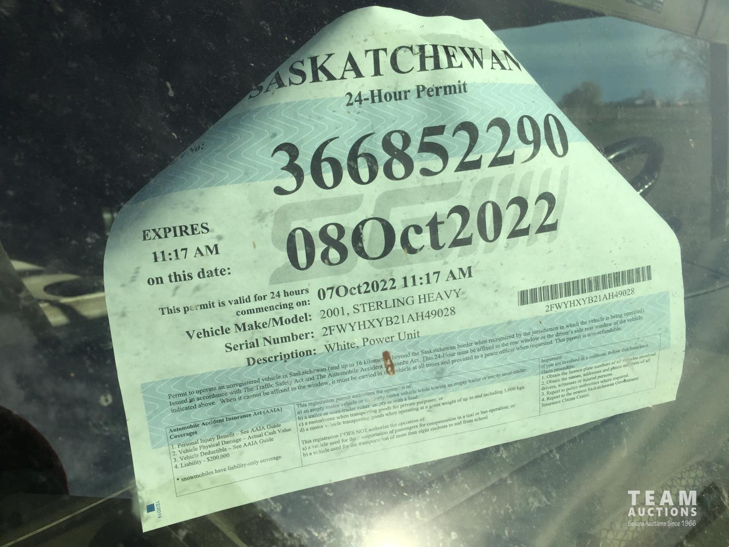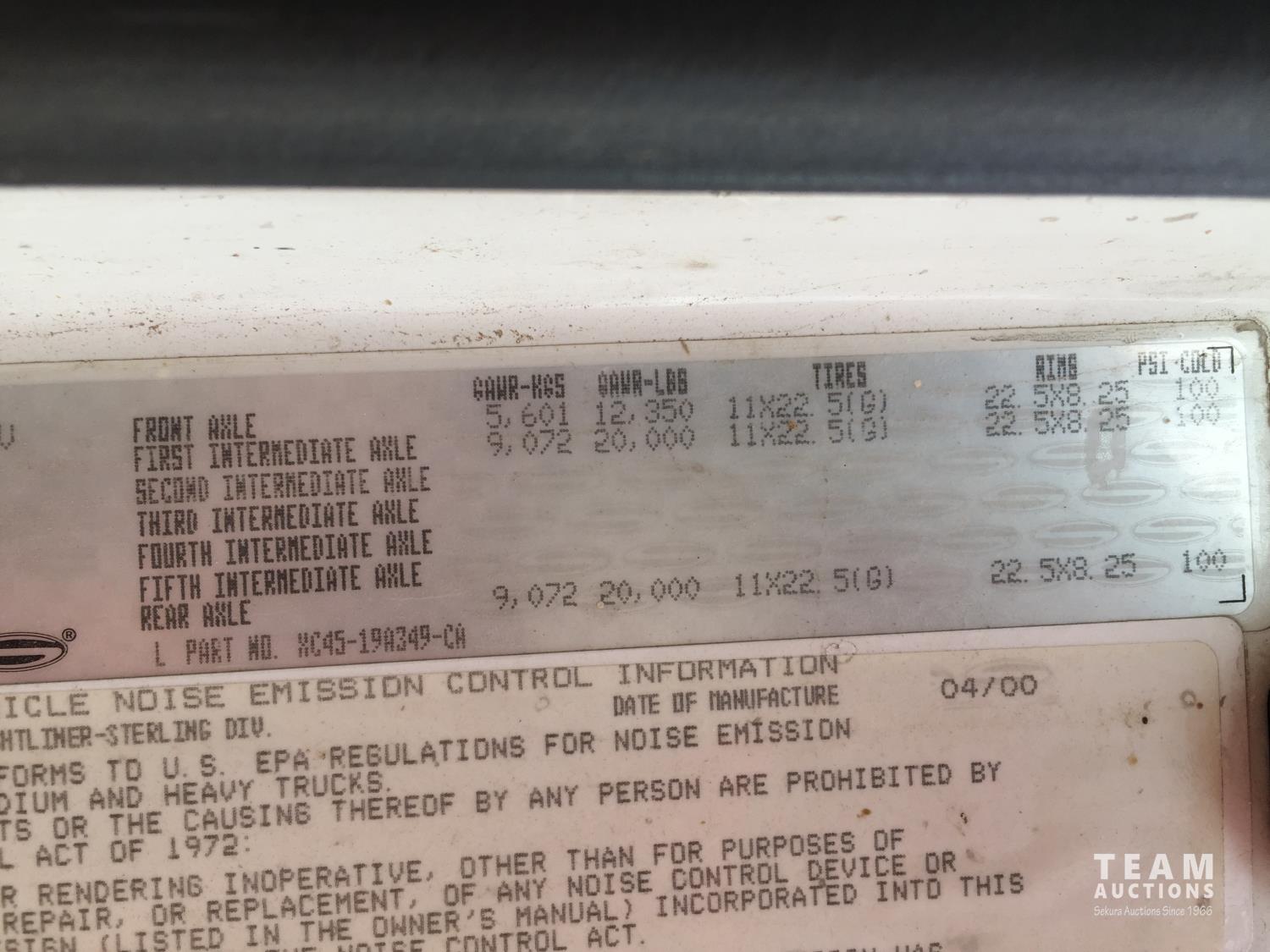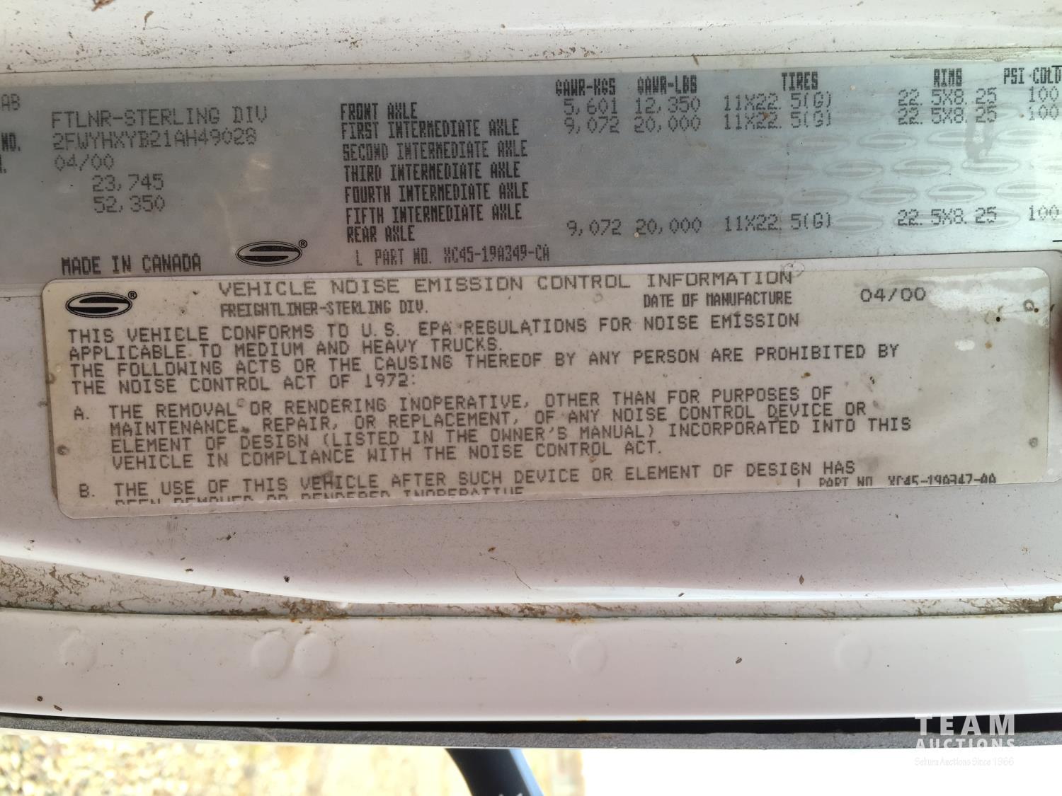 215 2001 Sterling T/A Sleeper Truck Tractor (Inoperable)