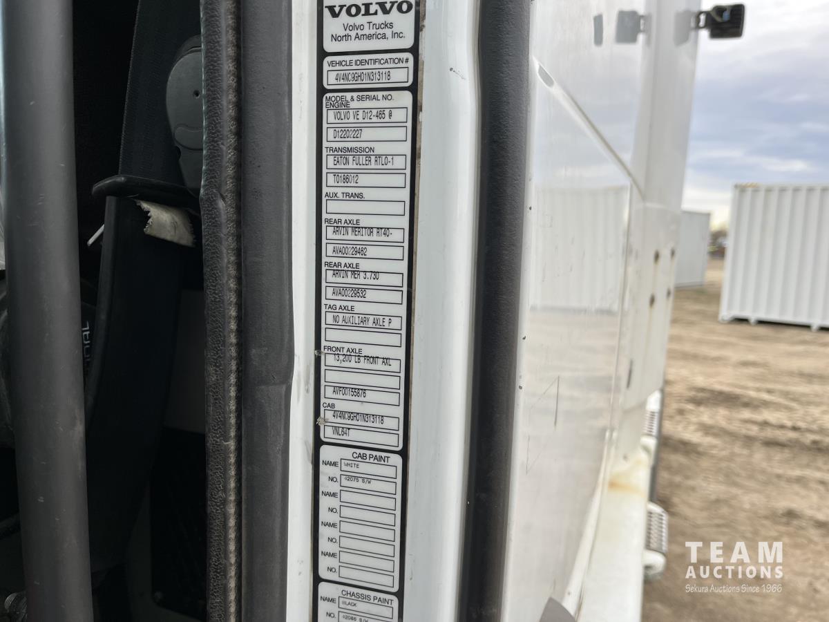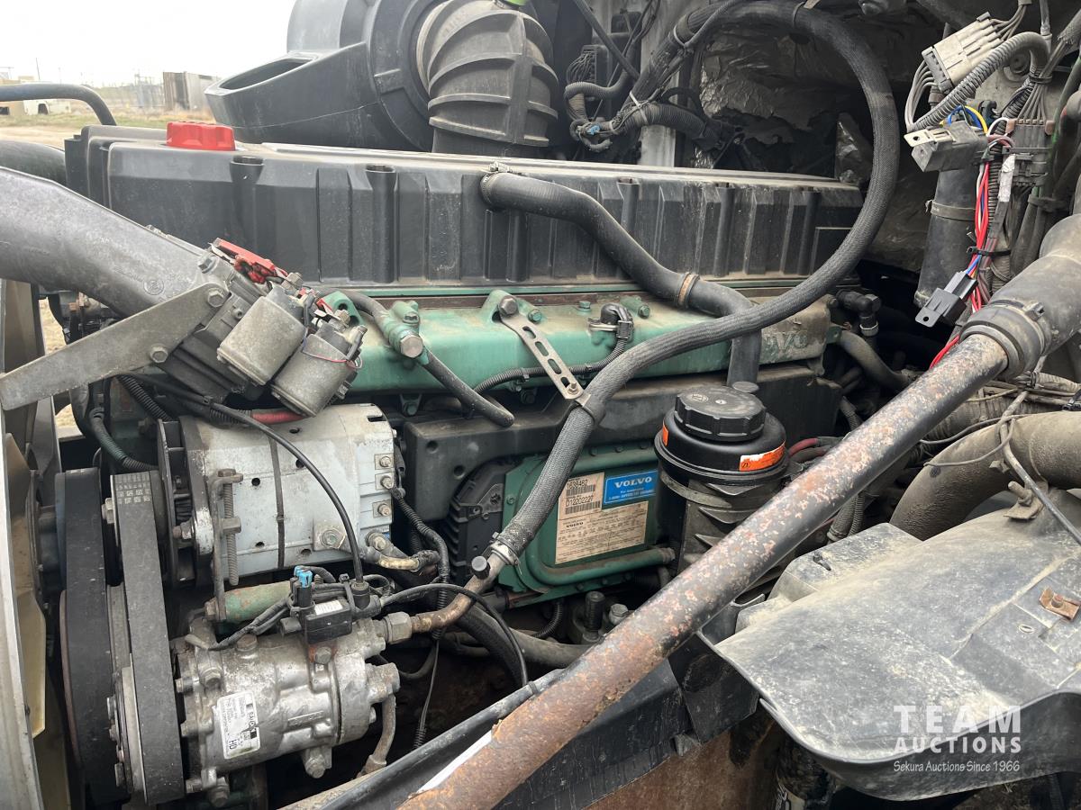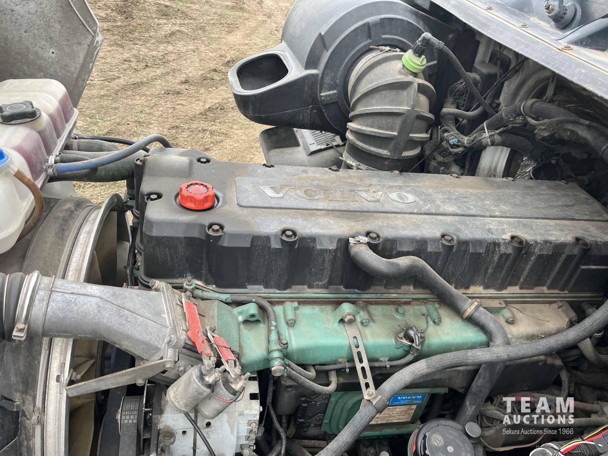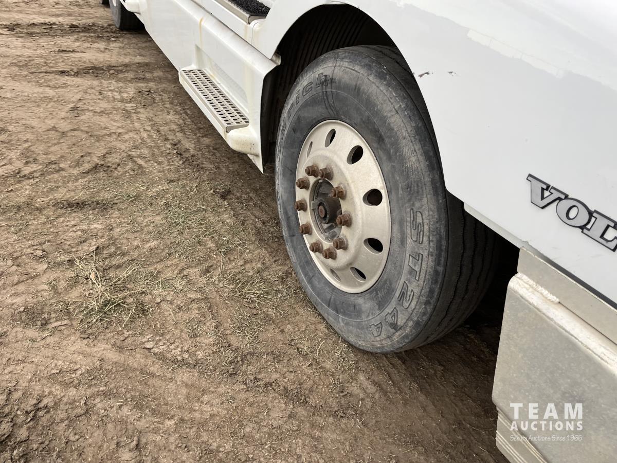 Volvo D12C 12.1 L 465 HP engine, engine brake, Eaton Fuller 13 speed manual transmission, high rise 54 inch sleeper, fridge, microwave, bunk beds, moose bumper, air ride suspension, 13,200 lb front axle, 40,000 lb rear axles, diff lock, 3.73 ratio, 211 inch WB, all aluminum wheels, 11R22.5 tires