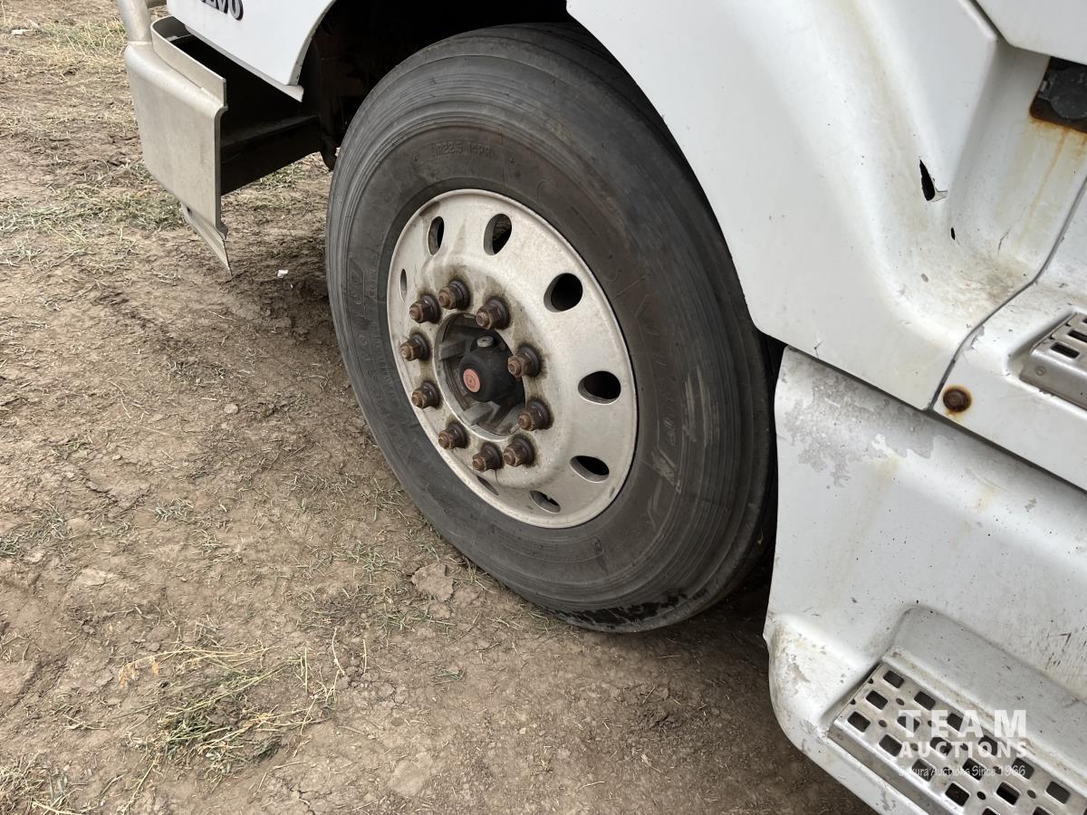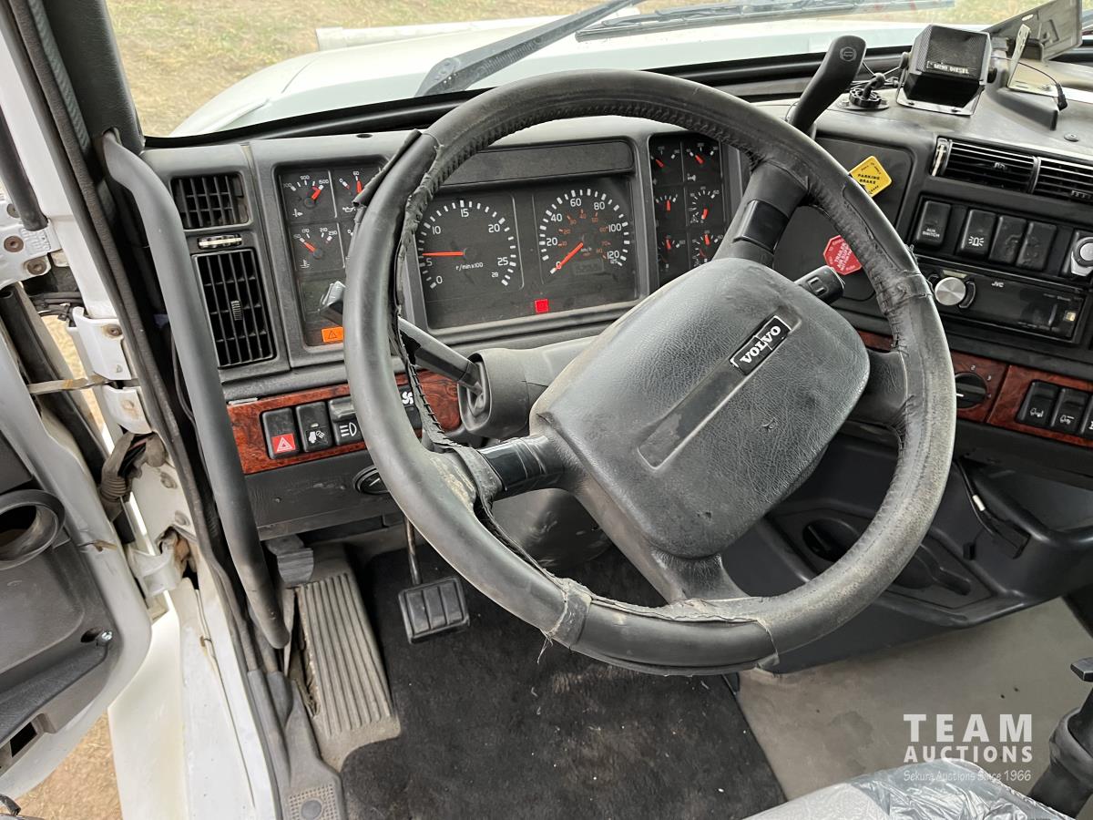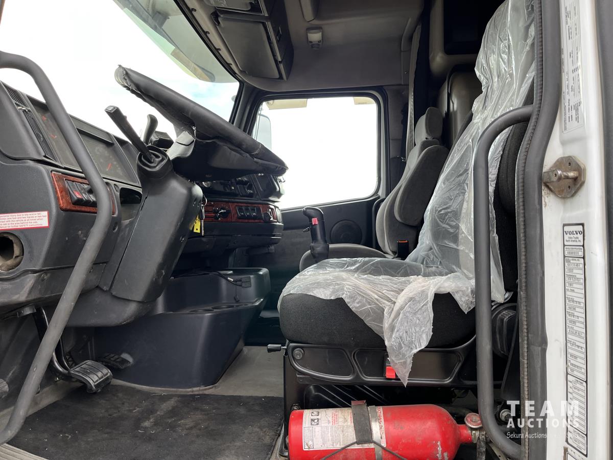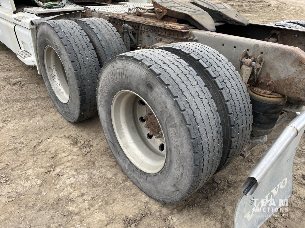 Volvo D12C 12.1 L 465 HP engine, engine brake, Eaton Fuller 13 speed manual transmission, high rise 54 inch sleeper, fridge, microwave, bunk beds, moose bumper, air ride suspension, 13,200 lb front axle, 40,000 lb rear axles, diff lock, 3.73 ratio, 211 inch WB, all aluminum wheels, 11R22.5 tires