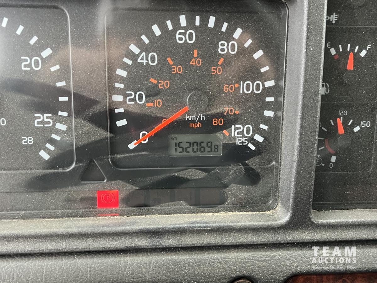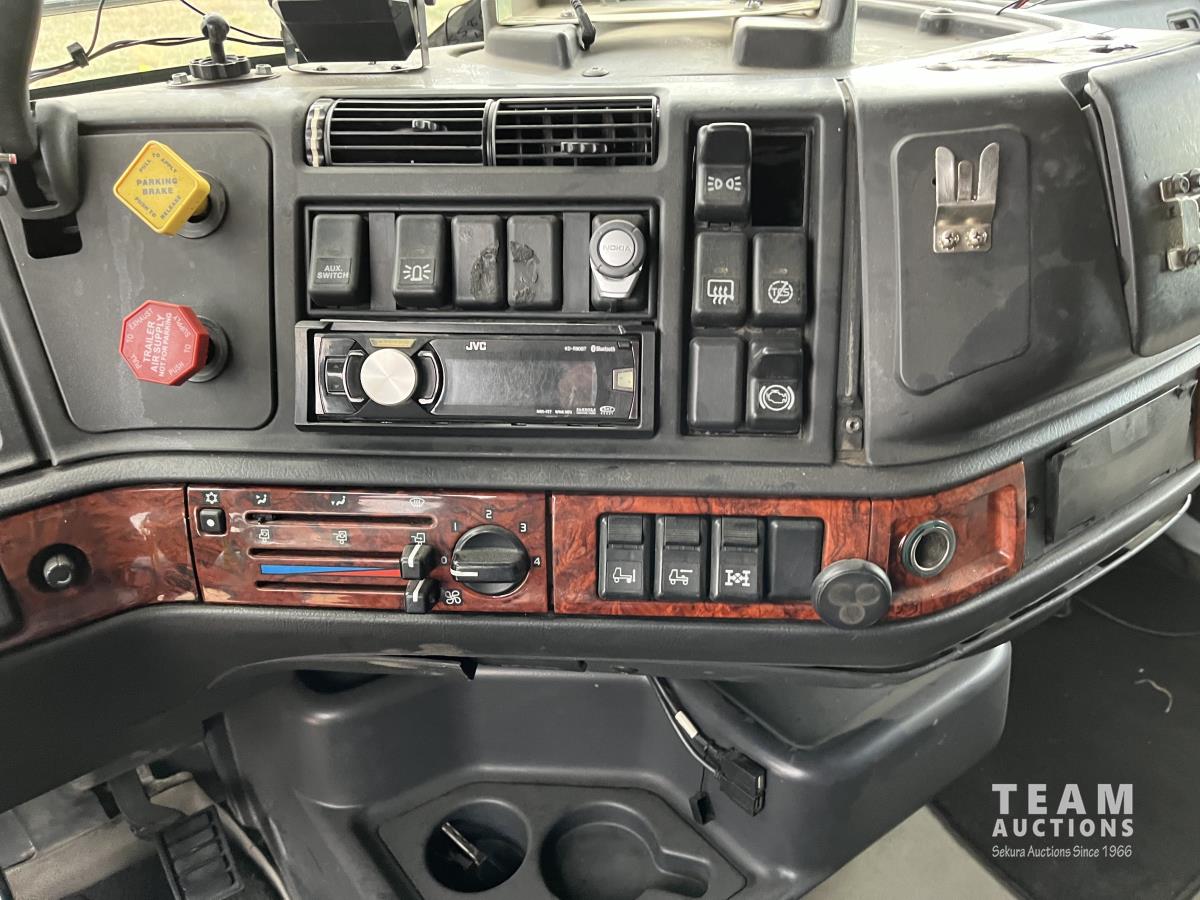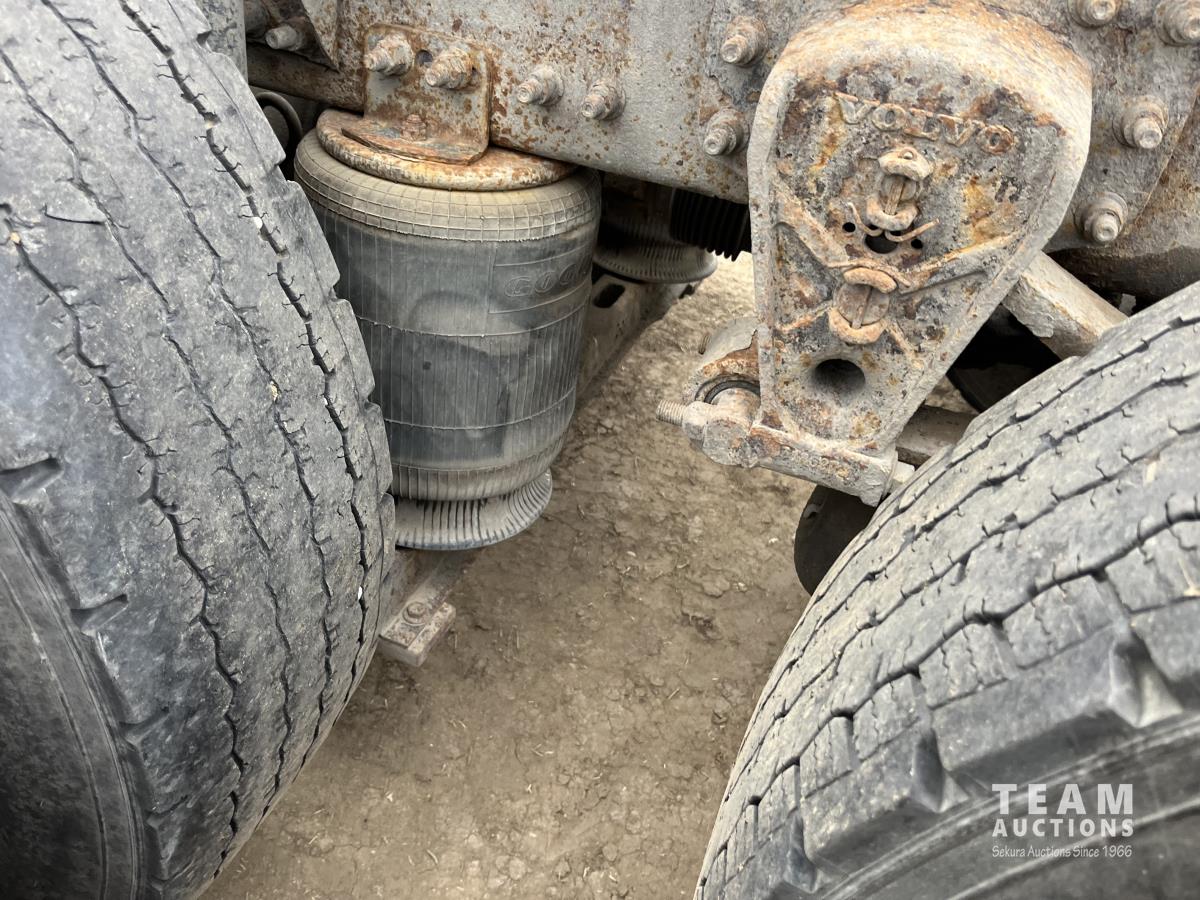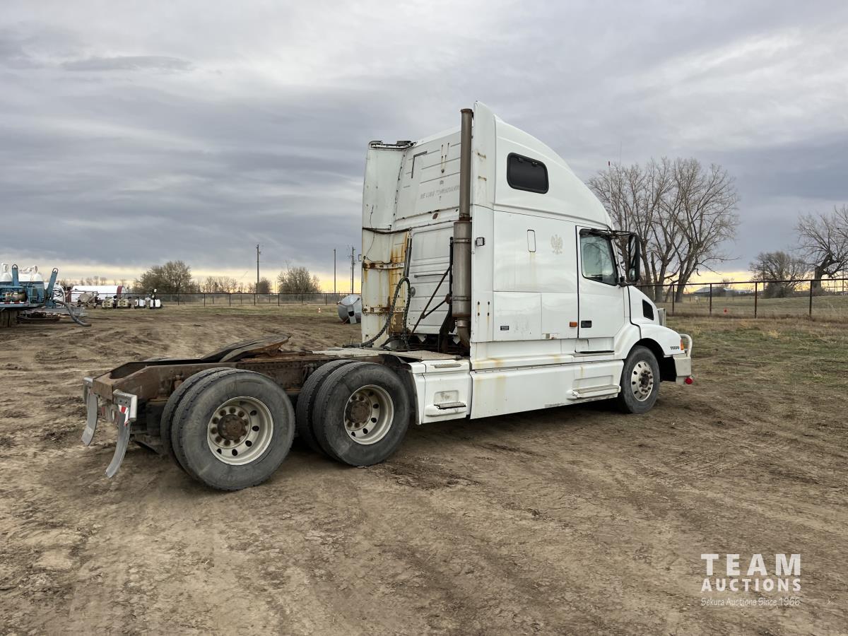 Volvo D12C 12.1 L 465 HP engine, engine brake, Eaton Fuller 13 speed manual transmission, high rise 54 inch sleeper, fridge, microwave, bunk beds, moose bumper, air ride suspension, 13,200 lb front axle, 40,000 lb rear axles, diff lock, 3.73 ratio, 211 inch WB, all aluminum wheels, 11R22.5 tires