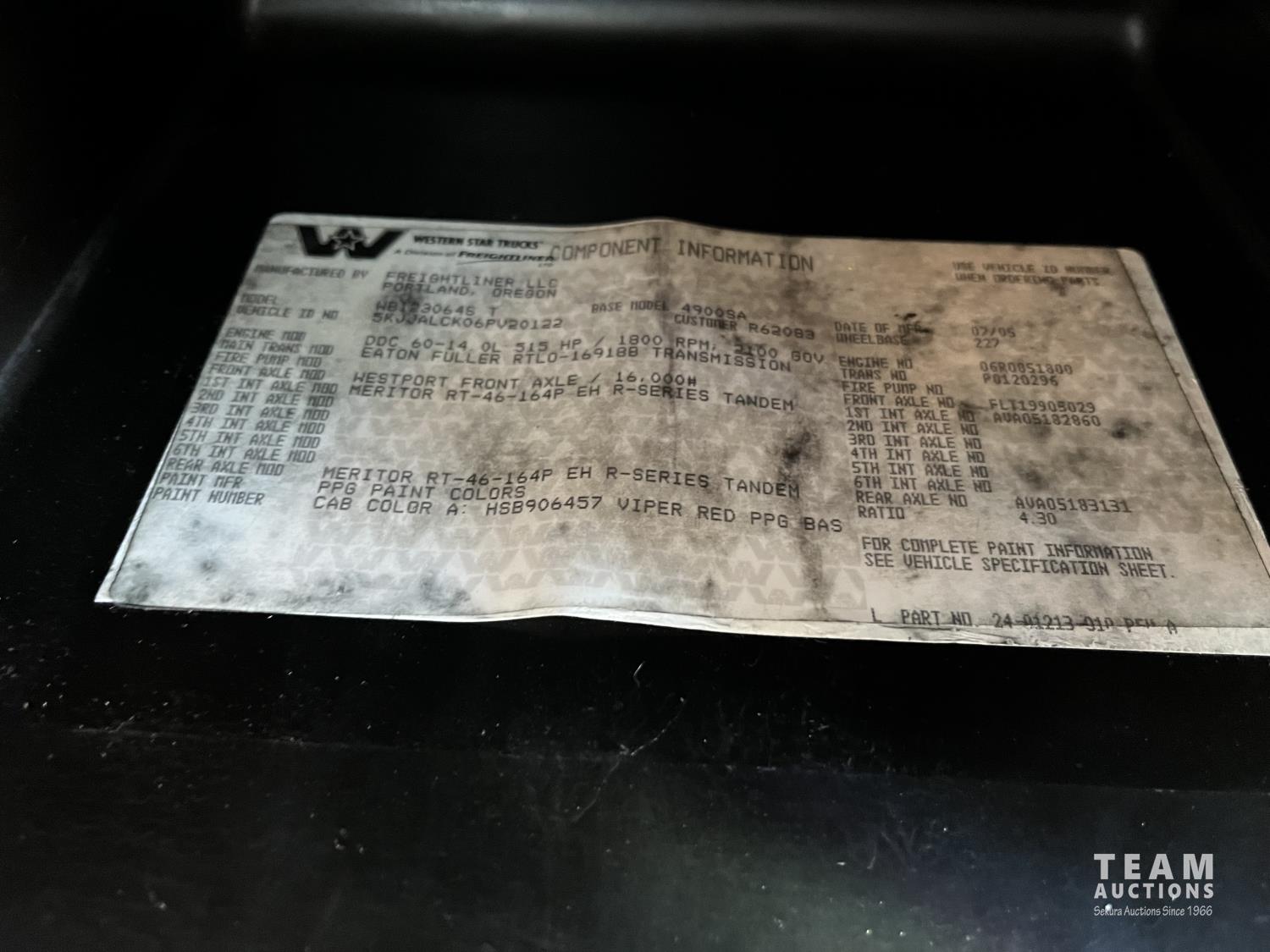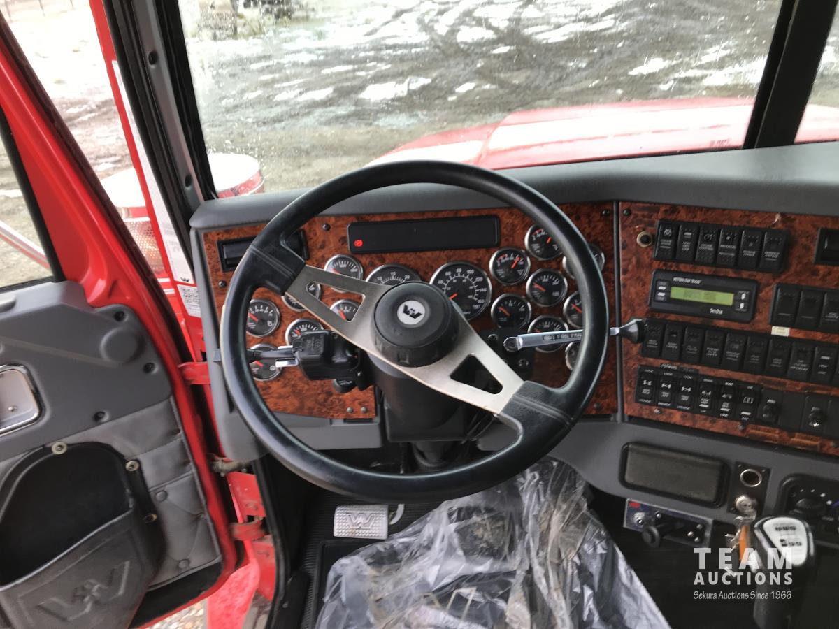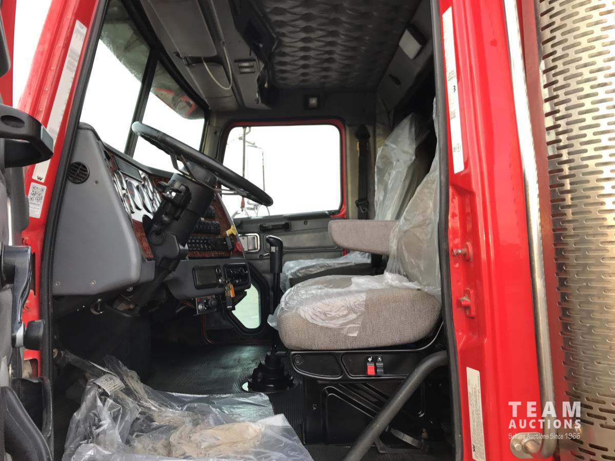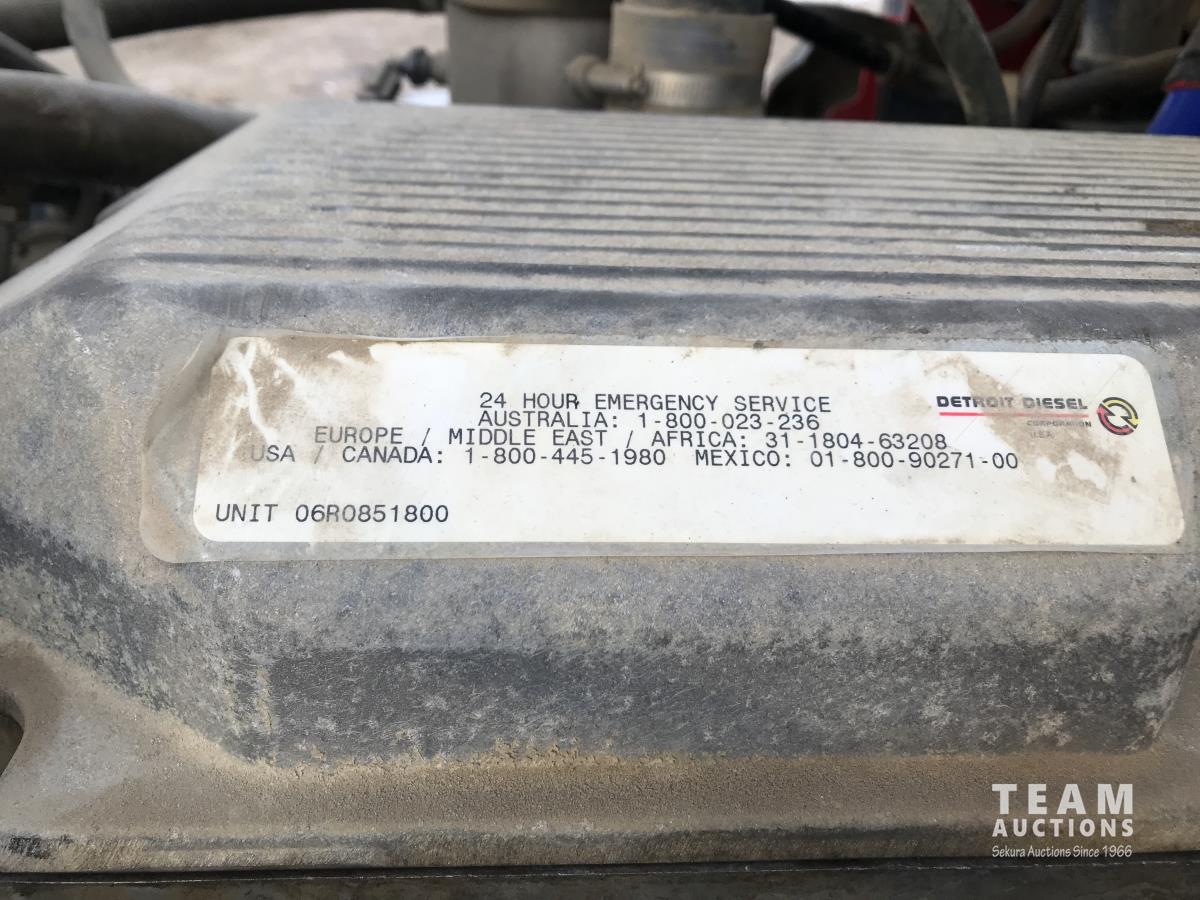 Detroit SERIES 60 14.0 L L6 515 HP diesel engine, Webasto engine heater, engine brake, engine block heater, Eaton Fuller 18 speed manual transmission, Webasto cab heater, mid rise 32 inch sleeper, A/C, cruise control, air ride driver seat, stereo, hydraulic wet kit, Magnum aluminum headache rack, steel tool boxes, air ride cab, chain holders, air ride suspension, 16,000 lb front axle, 46,000 lb rear axles, 3 way diff locks, 231 inch WB, all aluminum wheels, 425/65R22.5 front tires, 11R24.5 rear tires