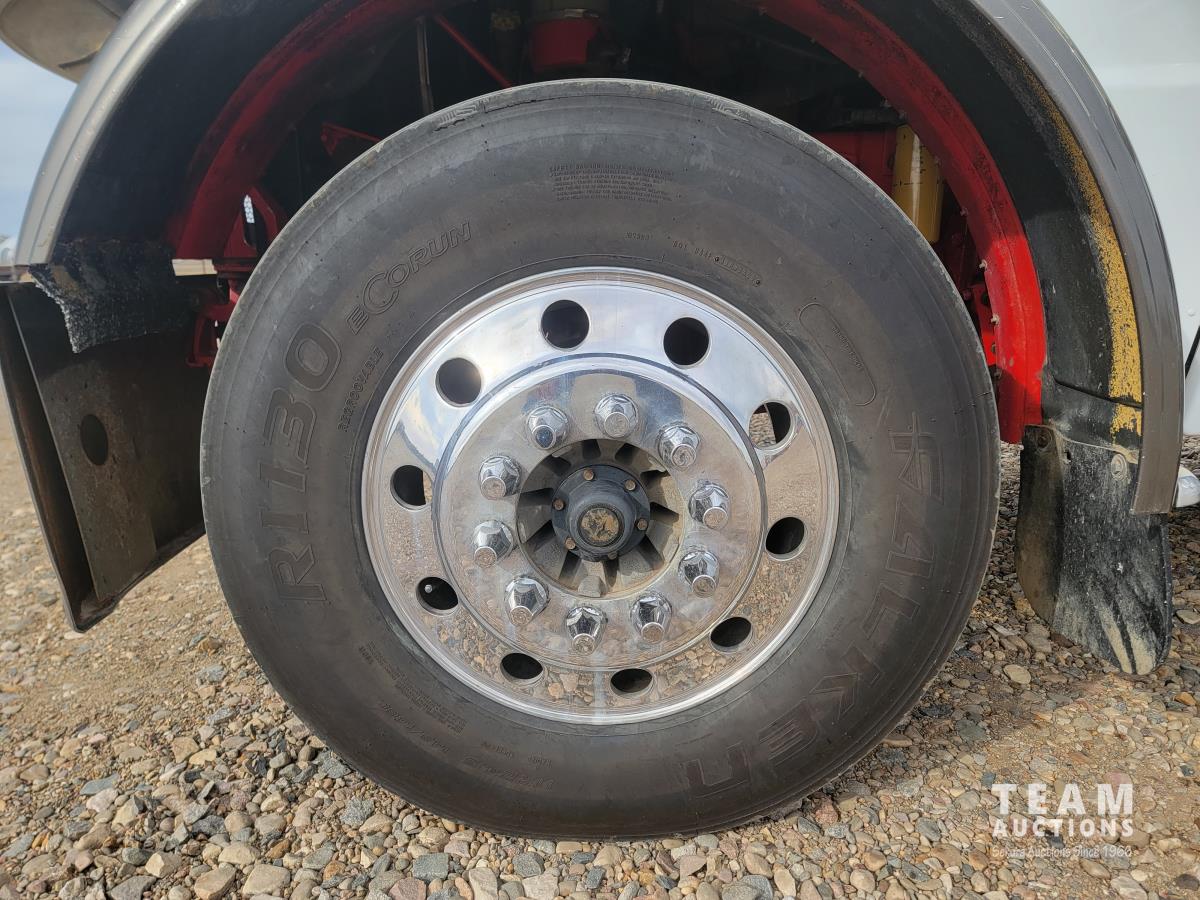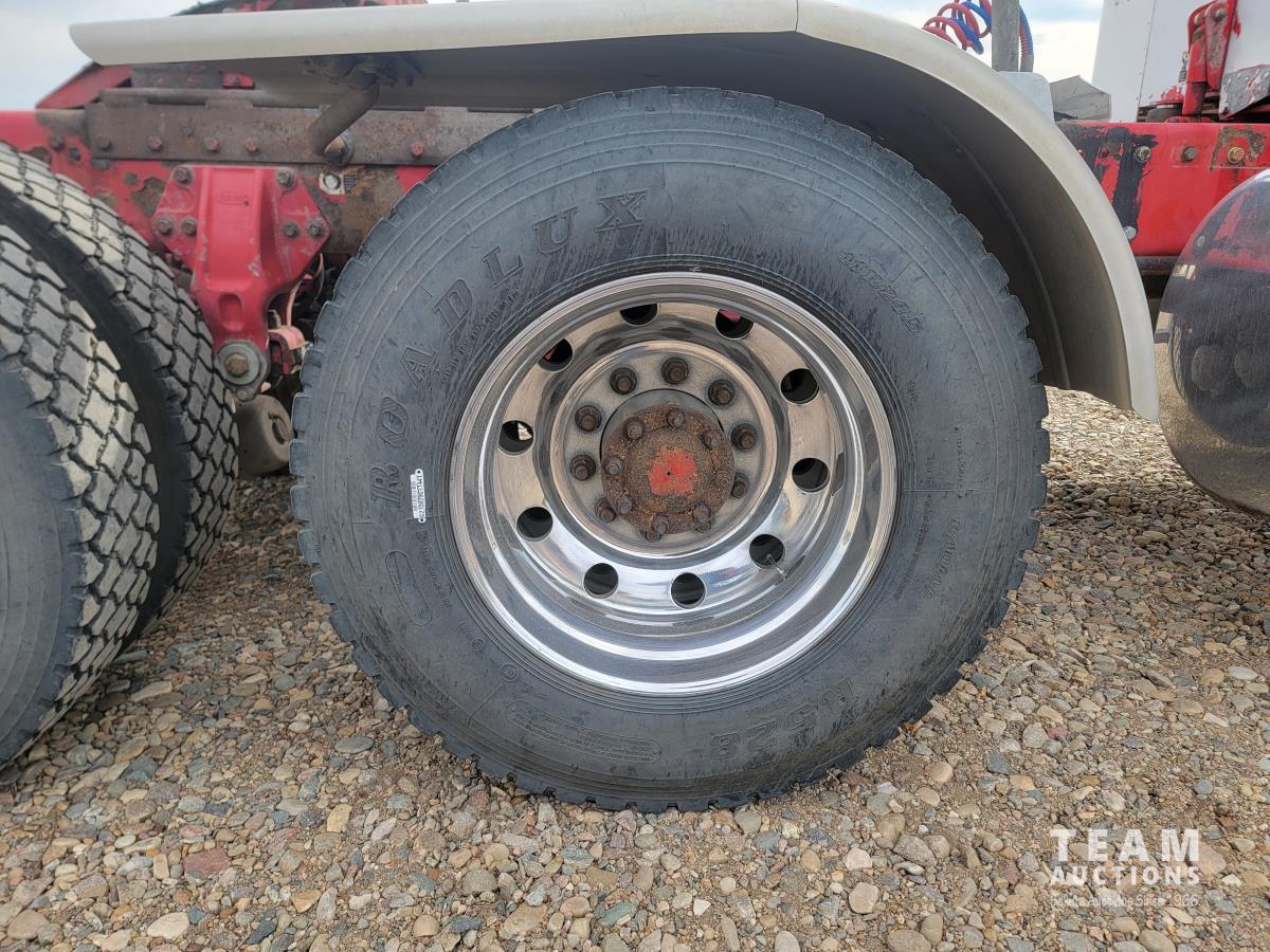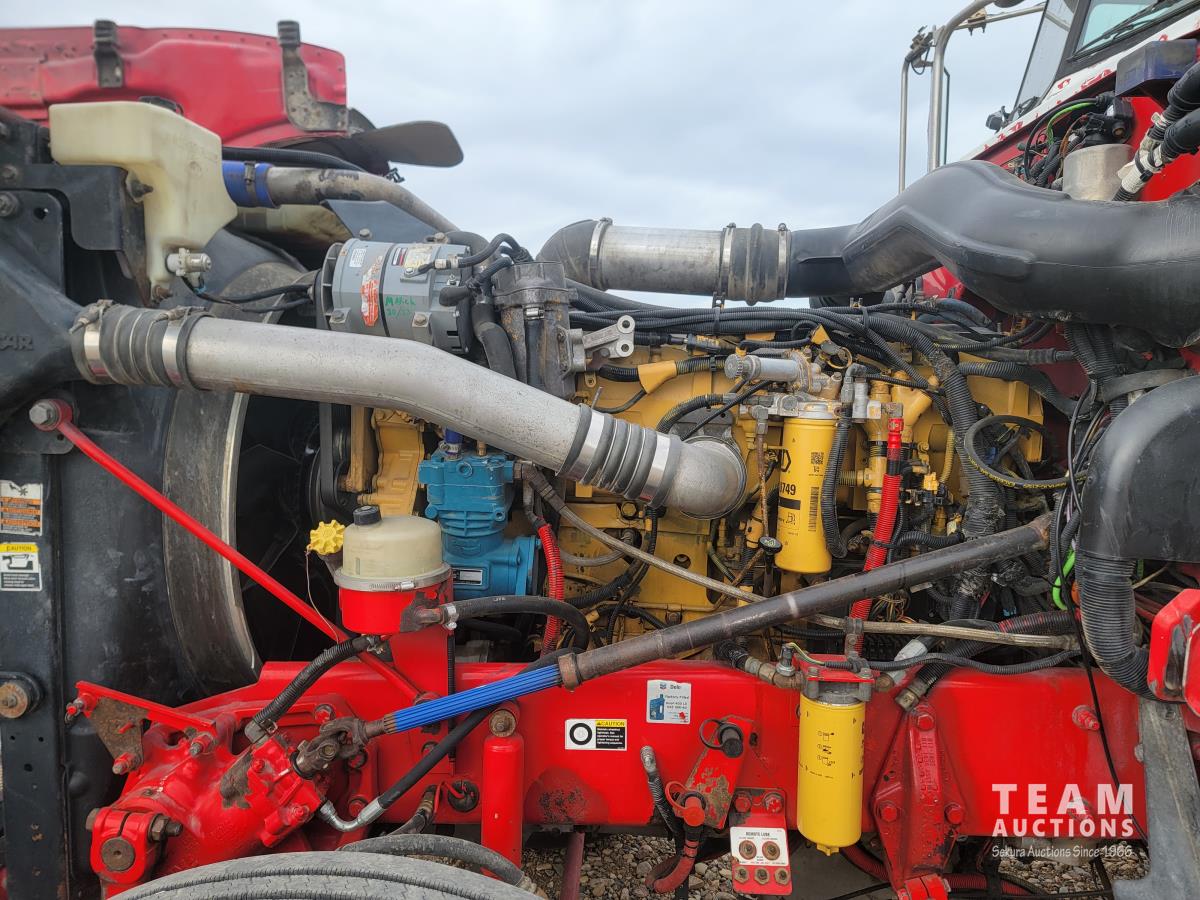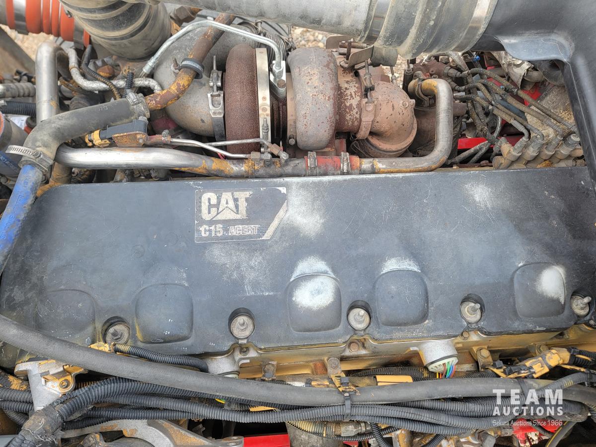 Caterpillar C15 15.2 466 HP engine, Eaton Fuller 18 speed manual transmission, mid rise 48 inch sleeper, air ride suspension, 12,000 lb front axle, 38,000 lb rear axles, full lockers, 245 inch WB, all aluminum wheels, 11R24.5 tires