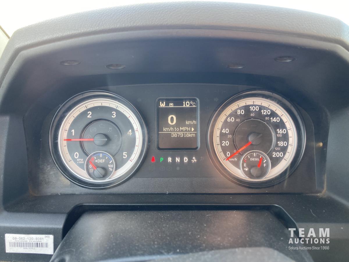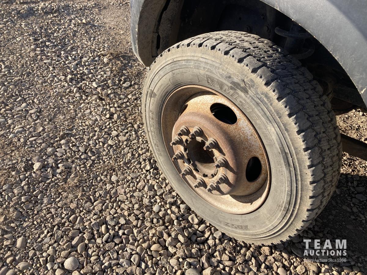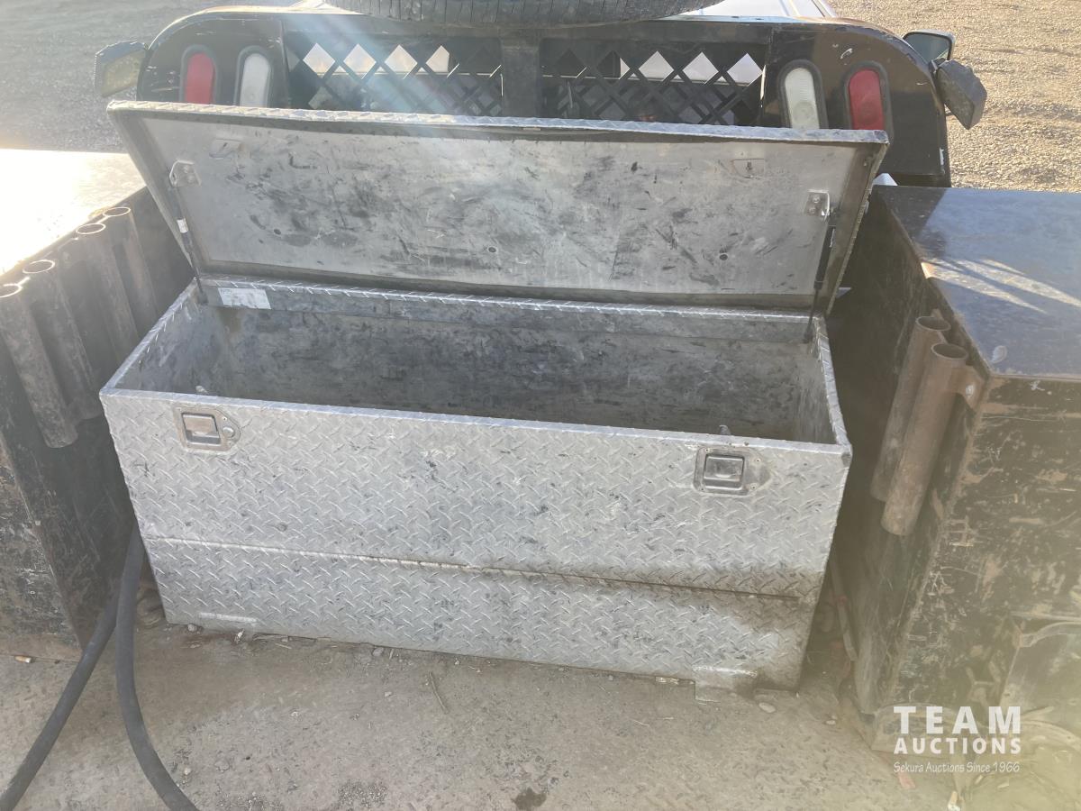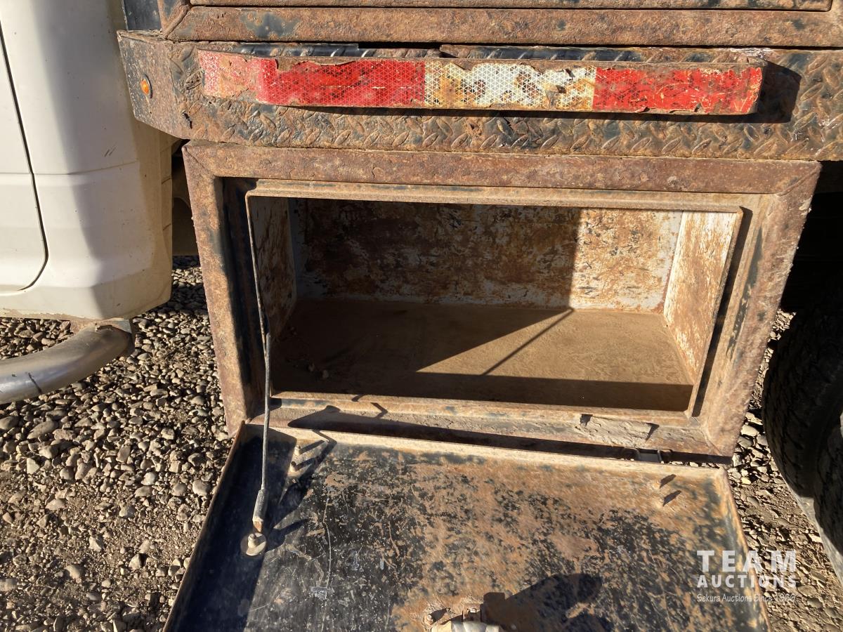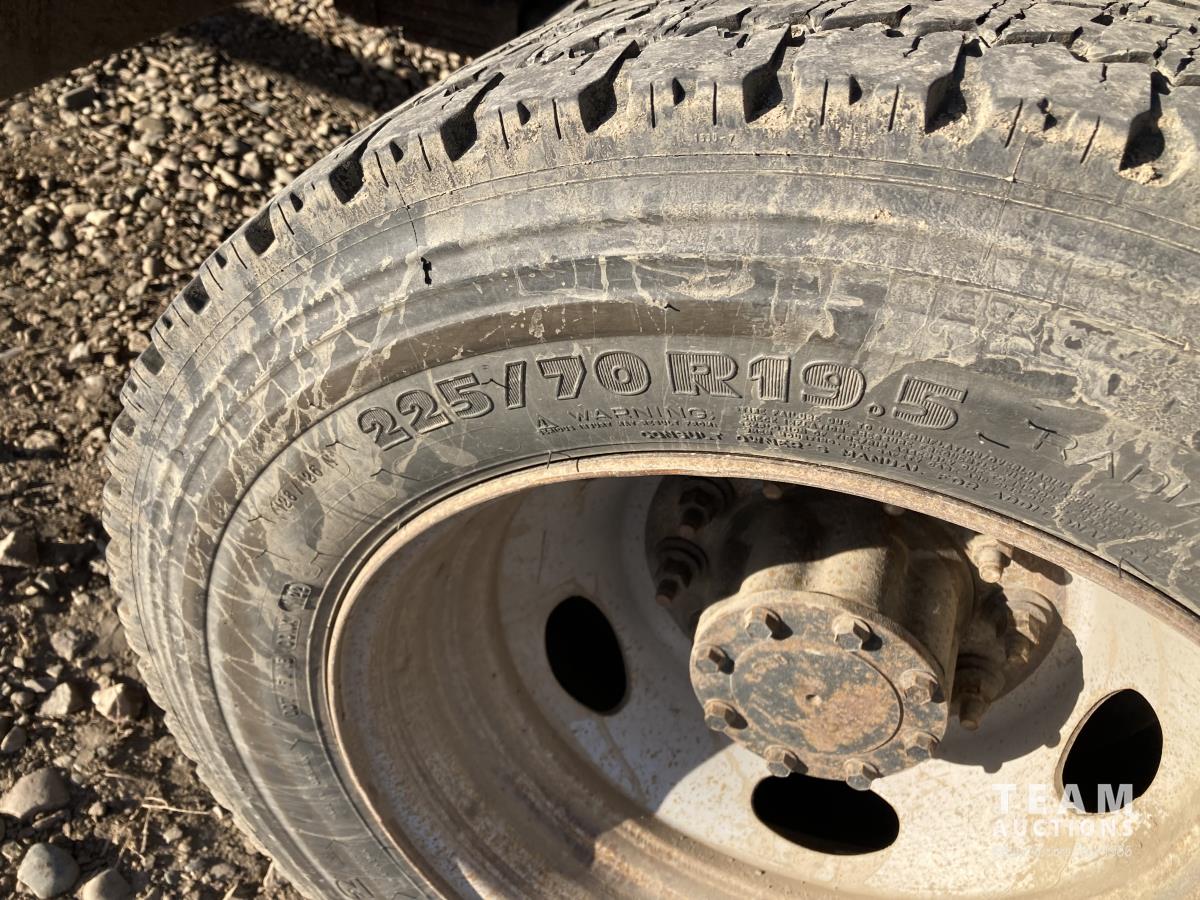 Cummins 6.7 L 6 cylinder diesel engine, 6 speed automatic transmission, A/C, cruise control, 91 inch x 9 ft deck, aluminum tool box/fuel tank, GPI pump, hose, nozzle, 225/70R19.5 tires