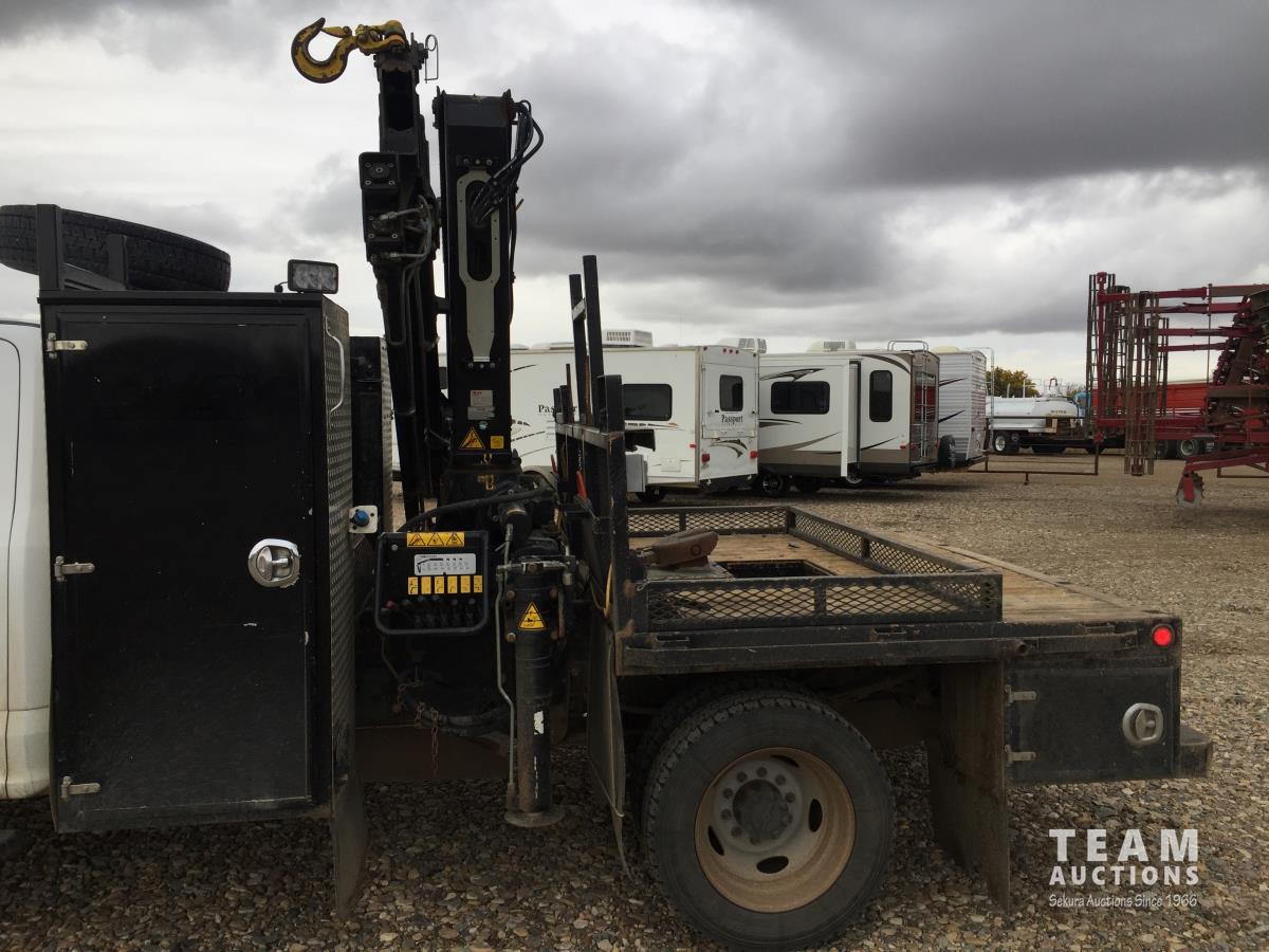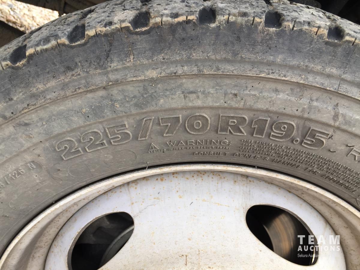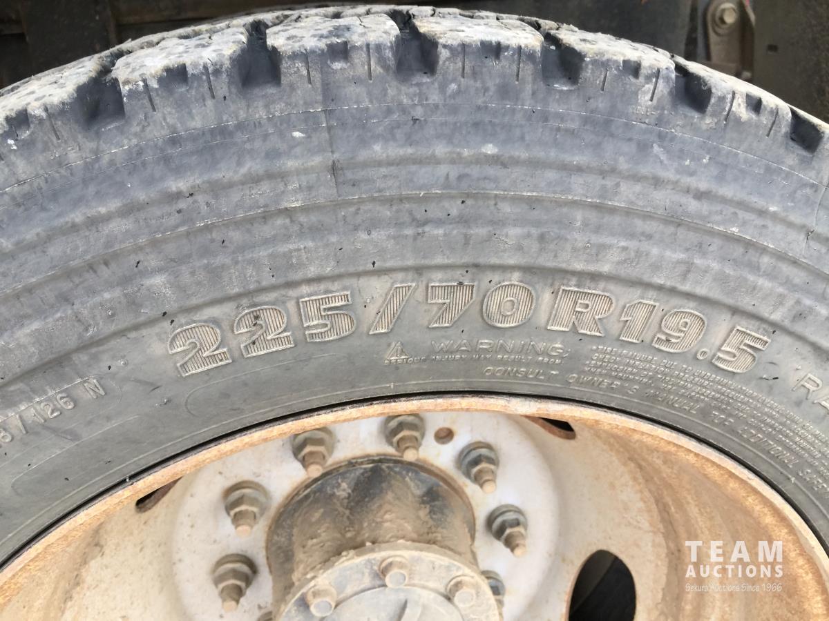 6.7 L V8 diesel engine, automatic transmission, A/C, cruise control, steel tool boxes, 96 inch x 136 inch deck, Hiab 077 B-3 CLX 3 section 31.5 ft knuckle crane, outriggers, center mount, dual controls, 8710 lb max lift capacity at 5 ft 3 inch, 3000W Inverter, 225/70R19.5 tires