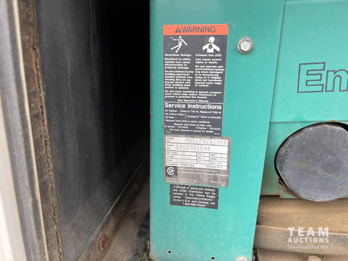 7.4L, gas, automatic transmission, Onan 4000 generator w/ 559 hrs, rear view camera, 8R19.5