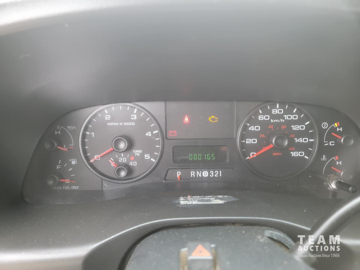 6.0 L V8 diesel engine, automatic transmission, 9 ft deck, hoist, 1 ft 6 inch box height, 6,500 lb front axle, 13,660 lb rear axles, p/w, p/l, 225/70R19.5 tires