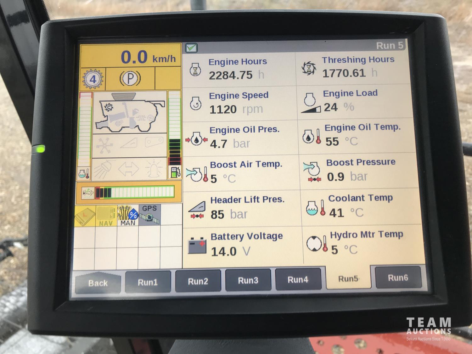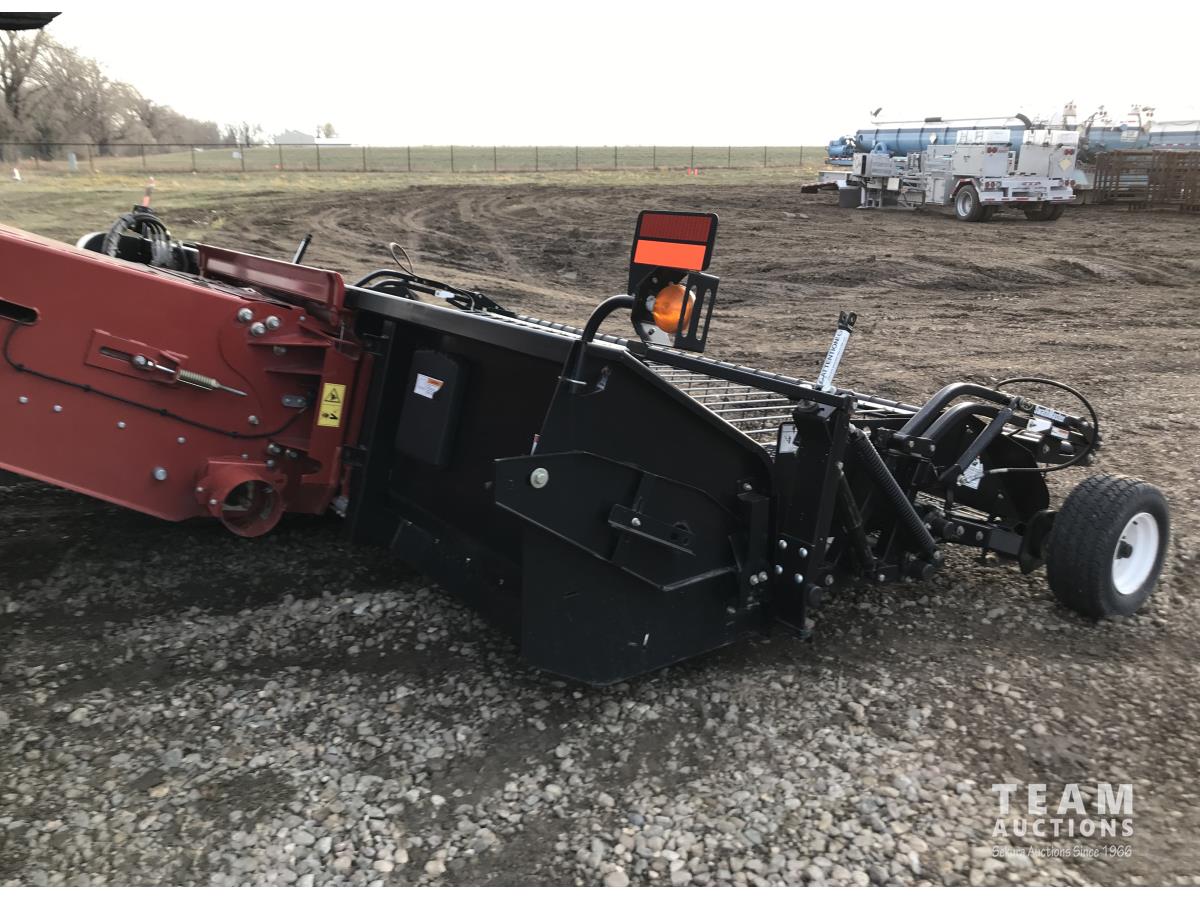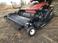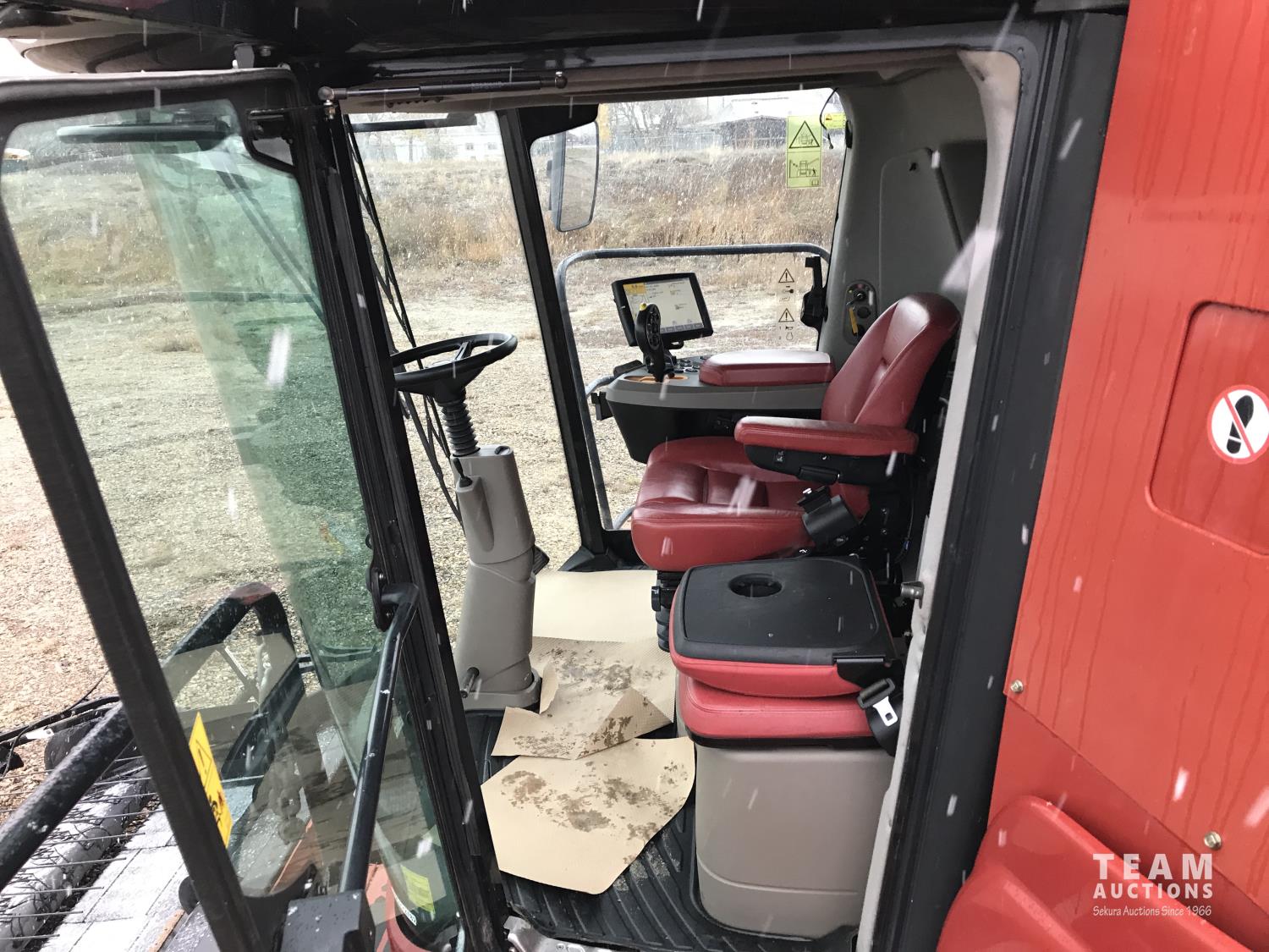 Macdon PW7 14 ft pick-up header, variable speed reel, auto header height, fore & aft, reverser, lateral tilt, rock trap, yield & moisture, chaff spreader, fine cut chopper, grain tank extensions, A/C, upgraded stereo, air ride seat, buddy seat, 900/60R32 front tires, 600/65R28 rear tires