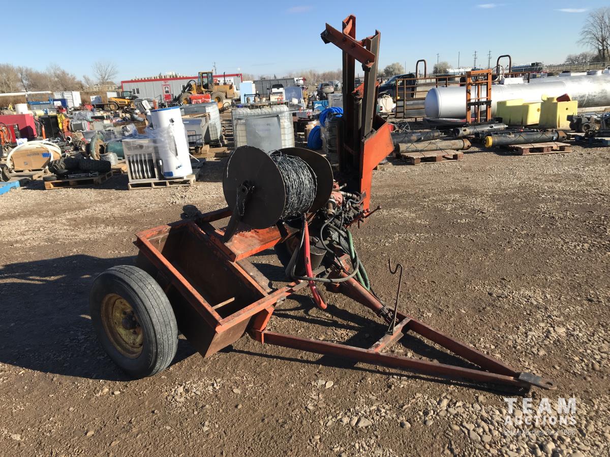 Has a reel for barbed wired, hydraulic controls by the pounder, 8.15-15 tire size