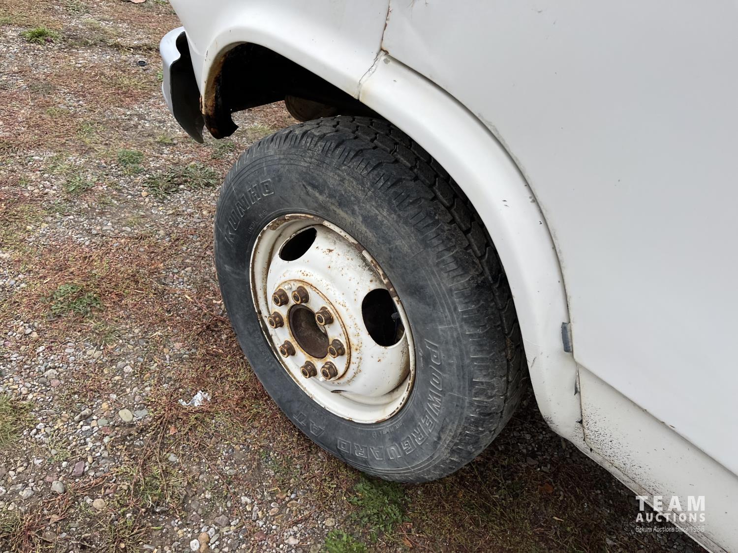 400 cu in V8 engine, automatic transmission, 14 ft box, 4,000 lb front axle, 6,200 lb rear axles, 8.75R16.5 tires