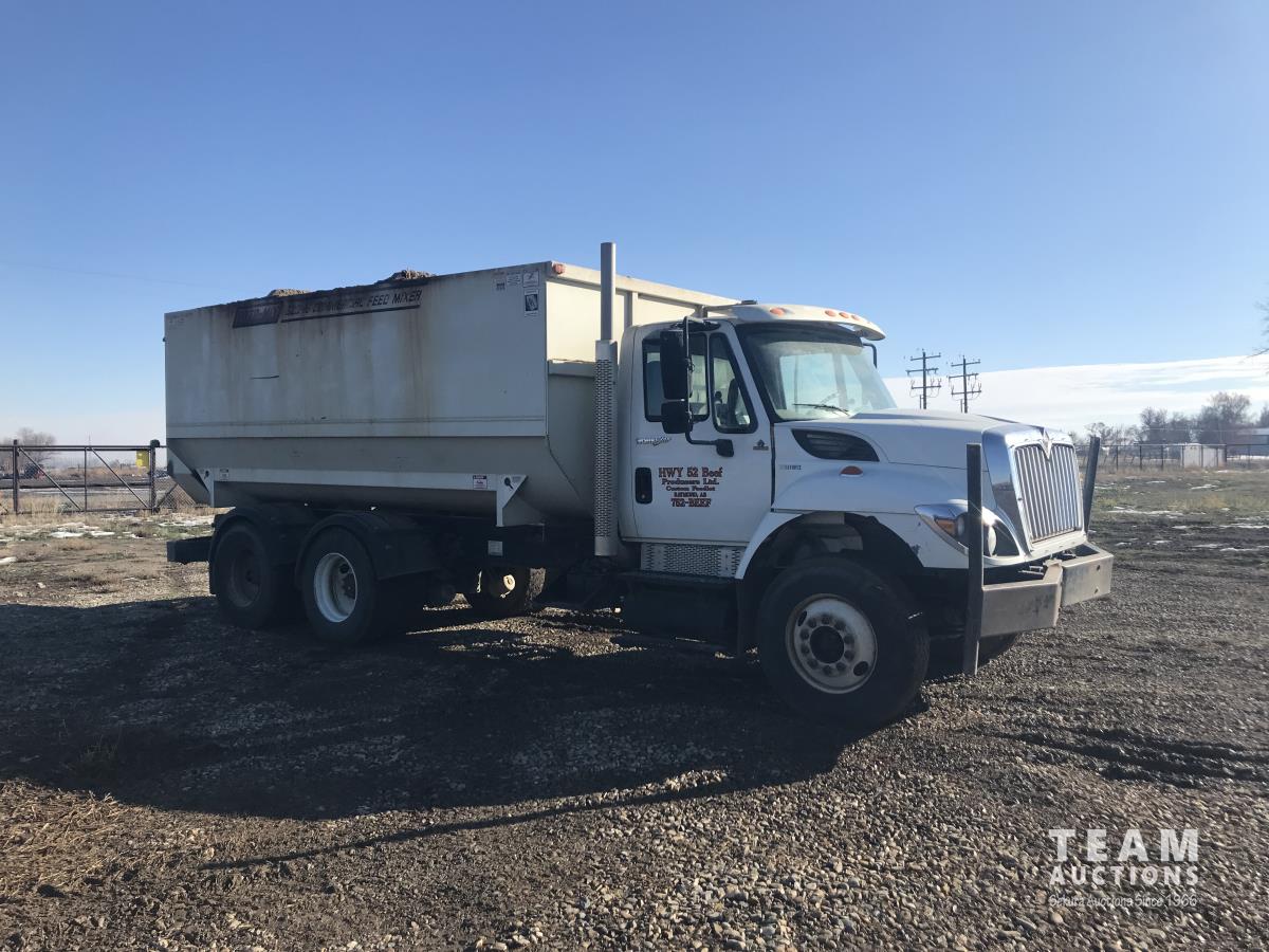 International MAXXFORCE diesel engine, Allison 4 speed automatic transmission, A/C, stereo, 16 ft box, Roto-Mix model 620-16 mixer, 620 cu. ft. , air ride suspension, 13,220 lb front axle, 40,000 lb rear axles, diff lock, 206 inch WB, 11R22.5 tires
