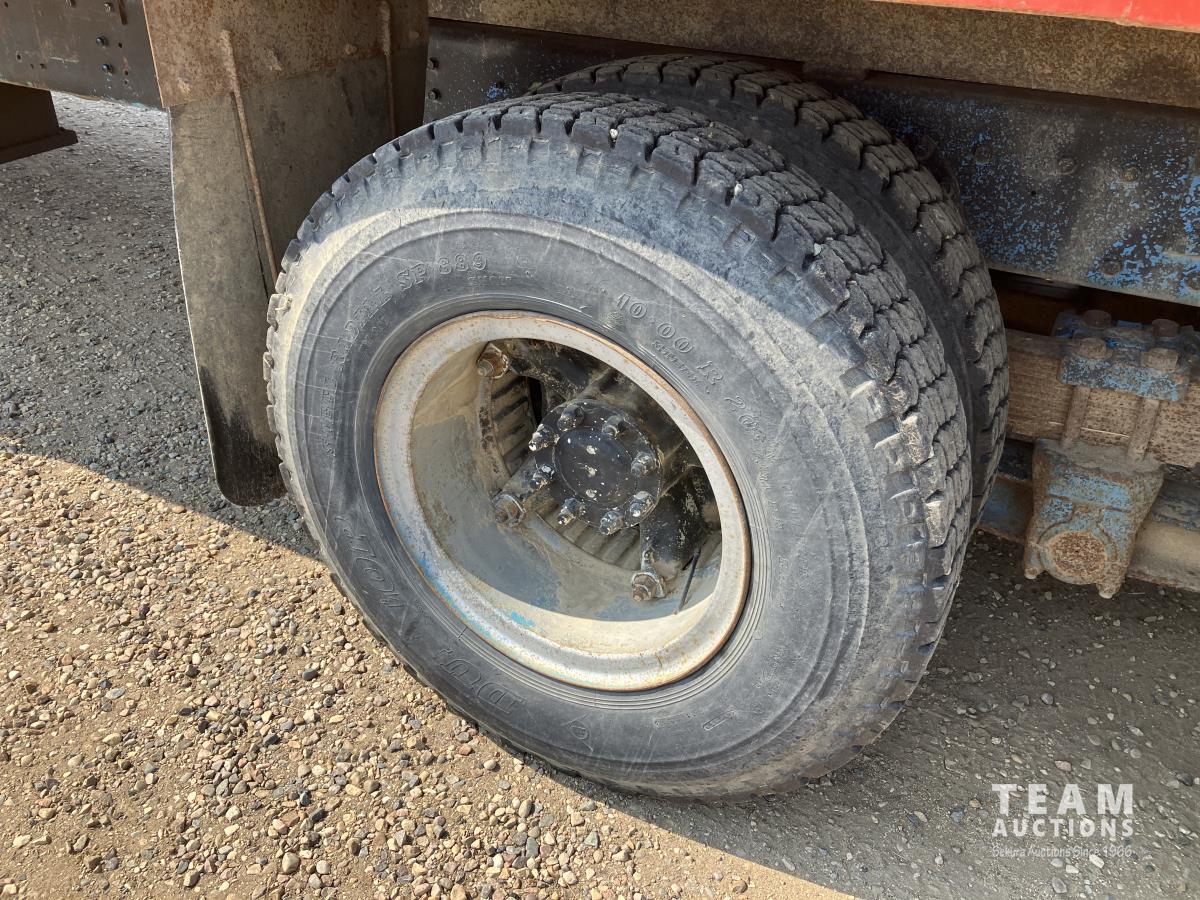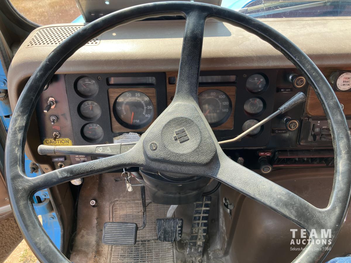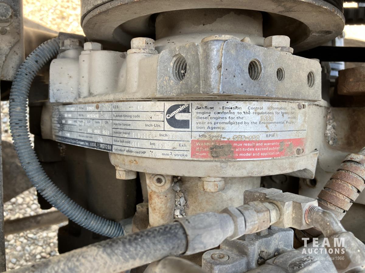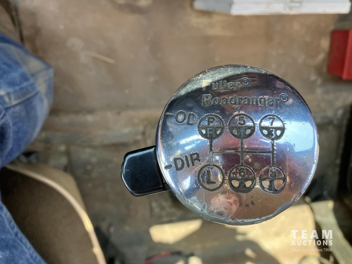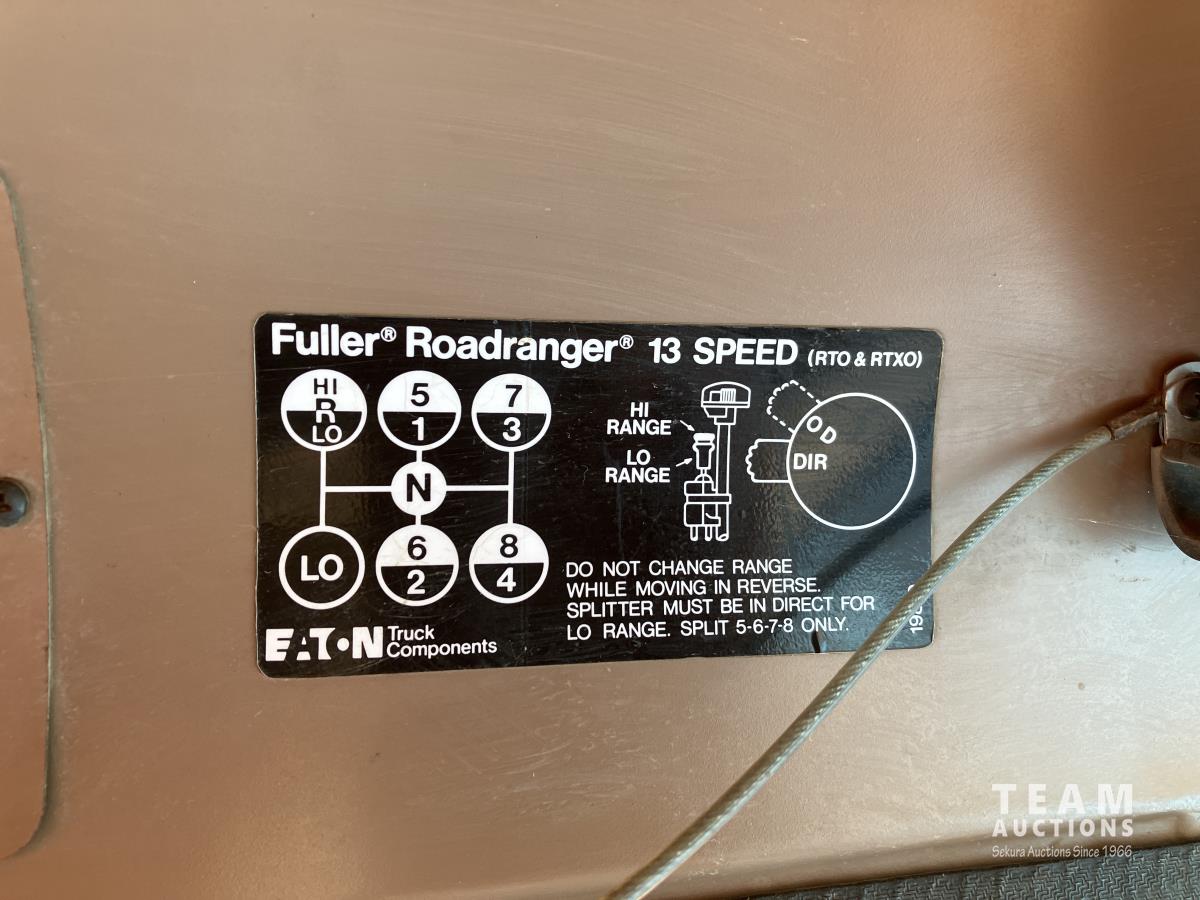 Cummins NTC-300 14 L 6 cylinder diesel engine, engine brake, Eaton Fuller ROADRANGER 13 speed manual transmission, air ride driver seat, radio, hydraulic wet kit, 21 ft box, hoist, spring suspension, diff lock, 252 inch WB, Michel's roll tarp, , 11R22.5 front tires, 10.00R20 rear tires