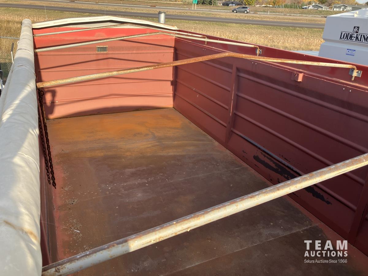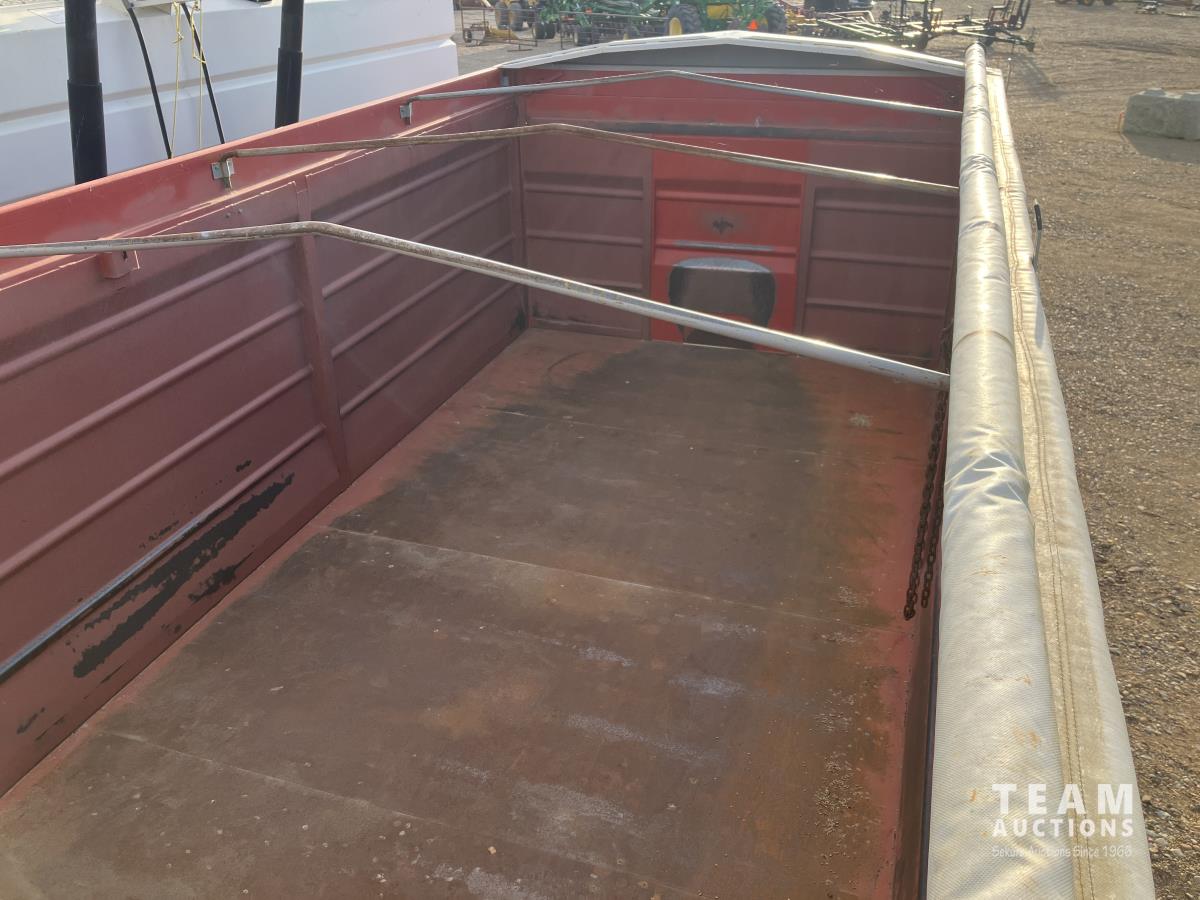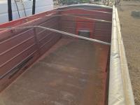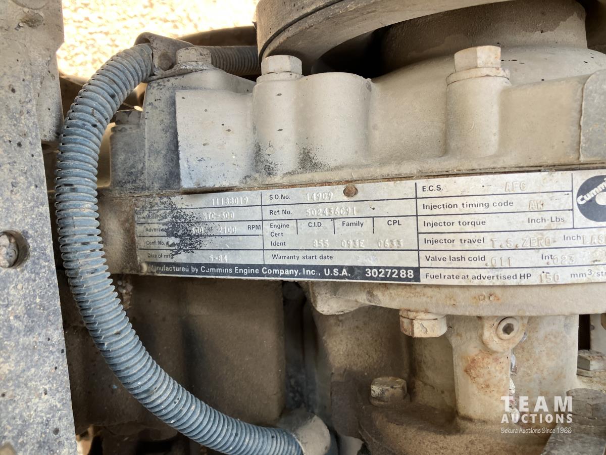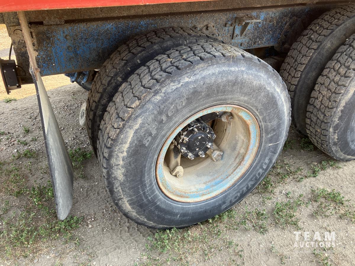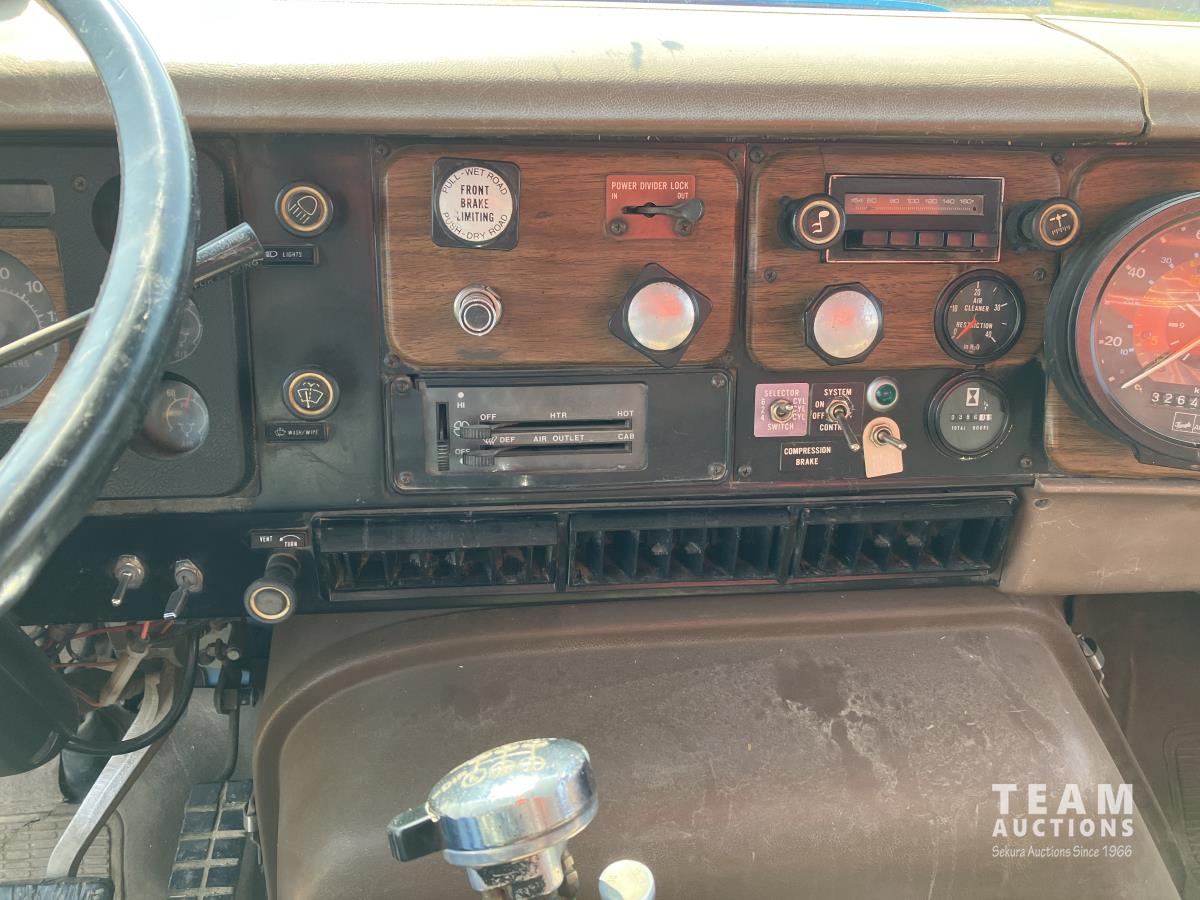 Cummins NTC-300 14 L 6 cylinder diesel engine, engine brake, Eaton Fuller ROADRANGER 13 speed manual transmission, air ride driver seat, radio, hydraulic wet kit, 21 ft box, hoist, spring suspension, diff lock, 252 inch WB, Michel's roll tarp, , 11R22.5 front tires, 10.00R20 rear tires