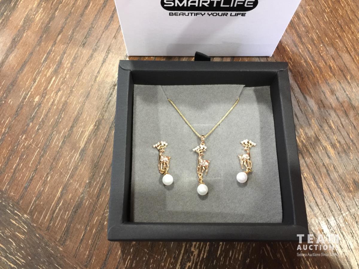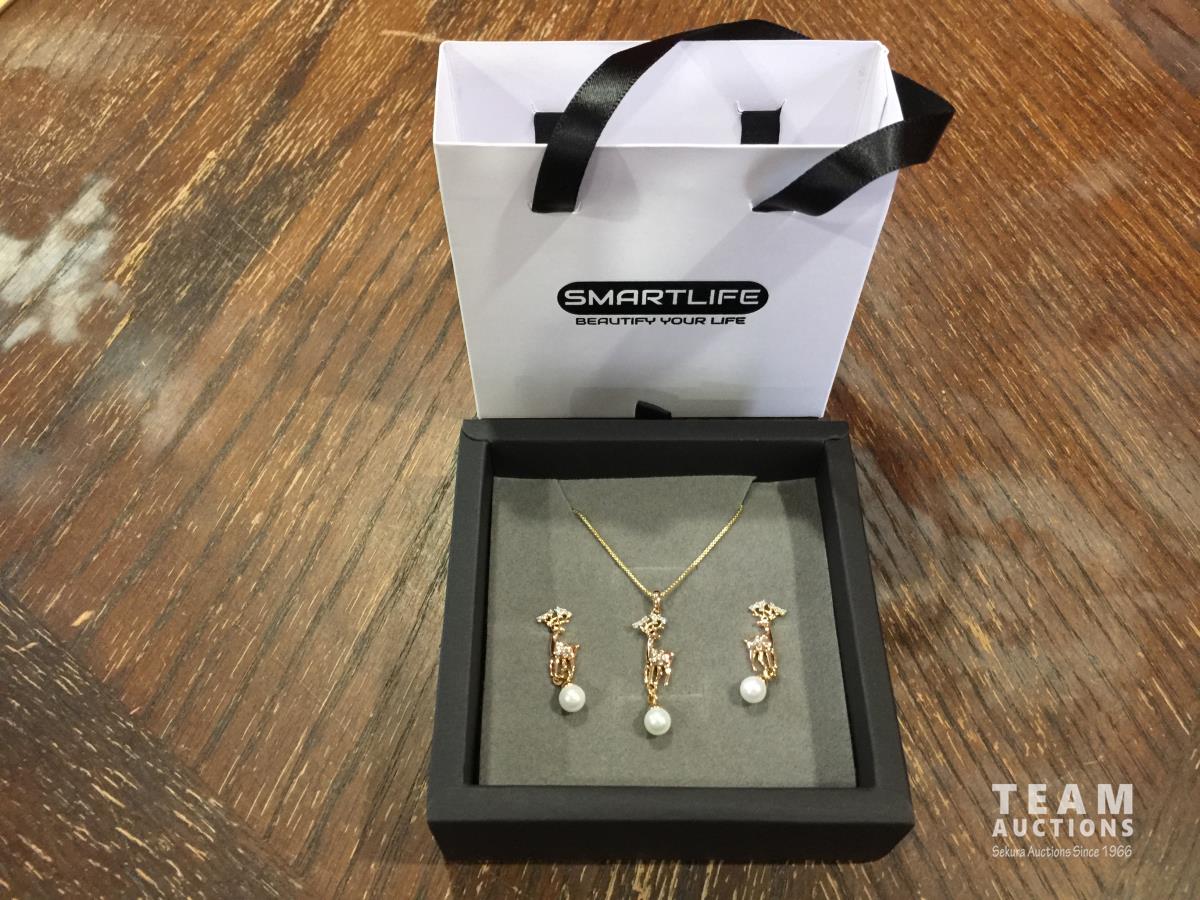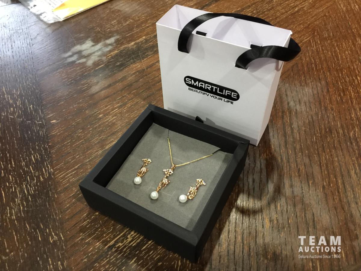 1430 18K Gold Plated 2 Piece Fawn Pearl Jewellery Set (Unused)