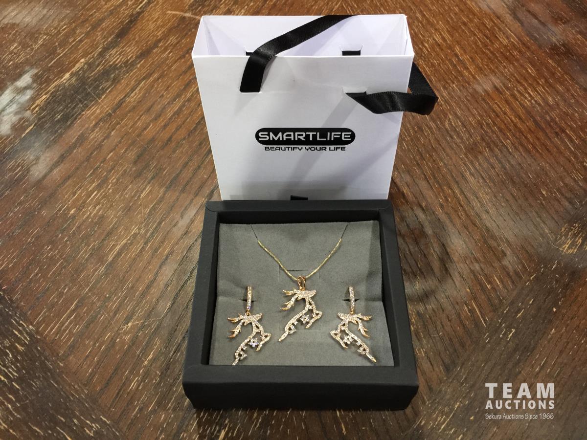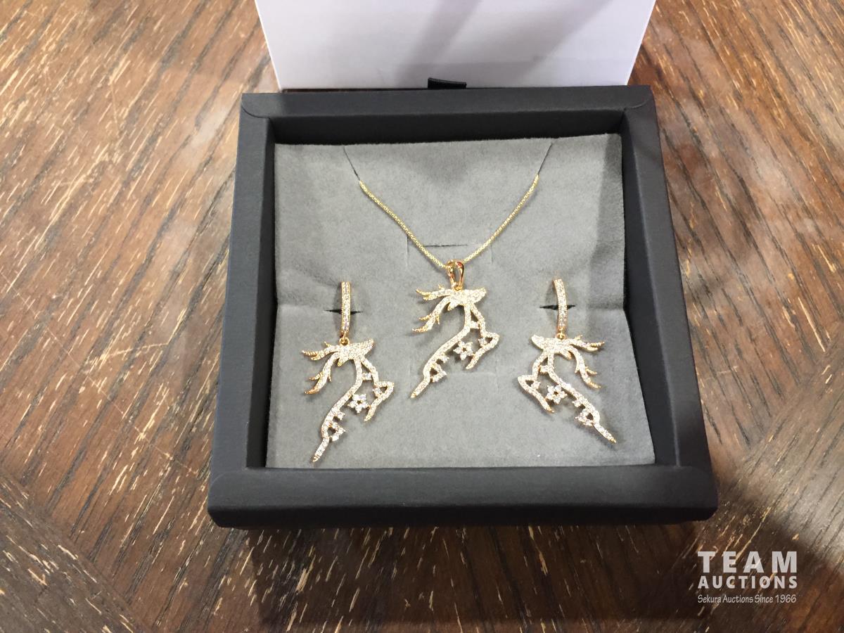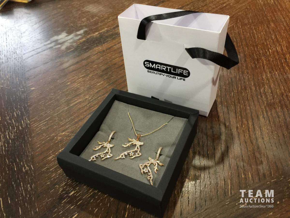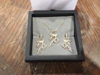 1427 18K Gold Plated Reindeer 2 Piece Jewellery Set (Unused)