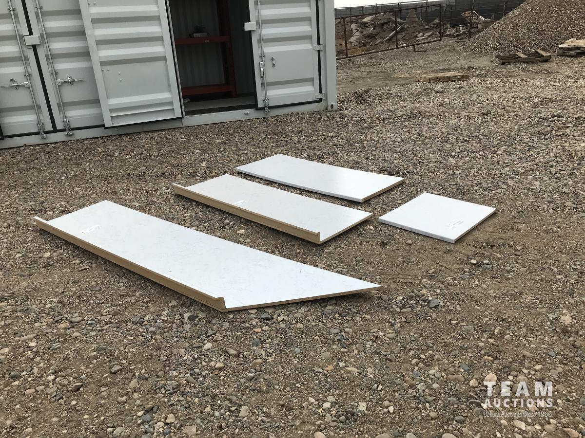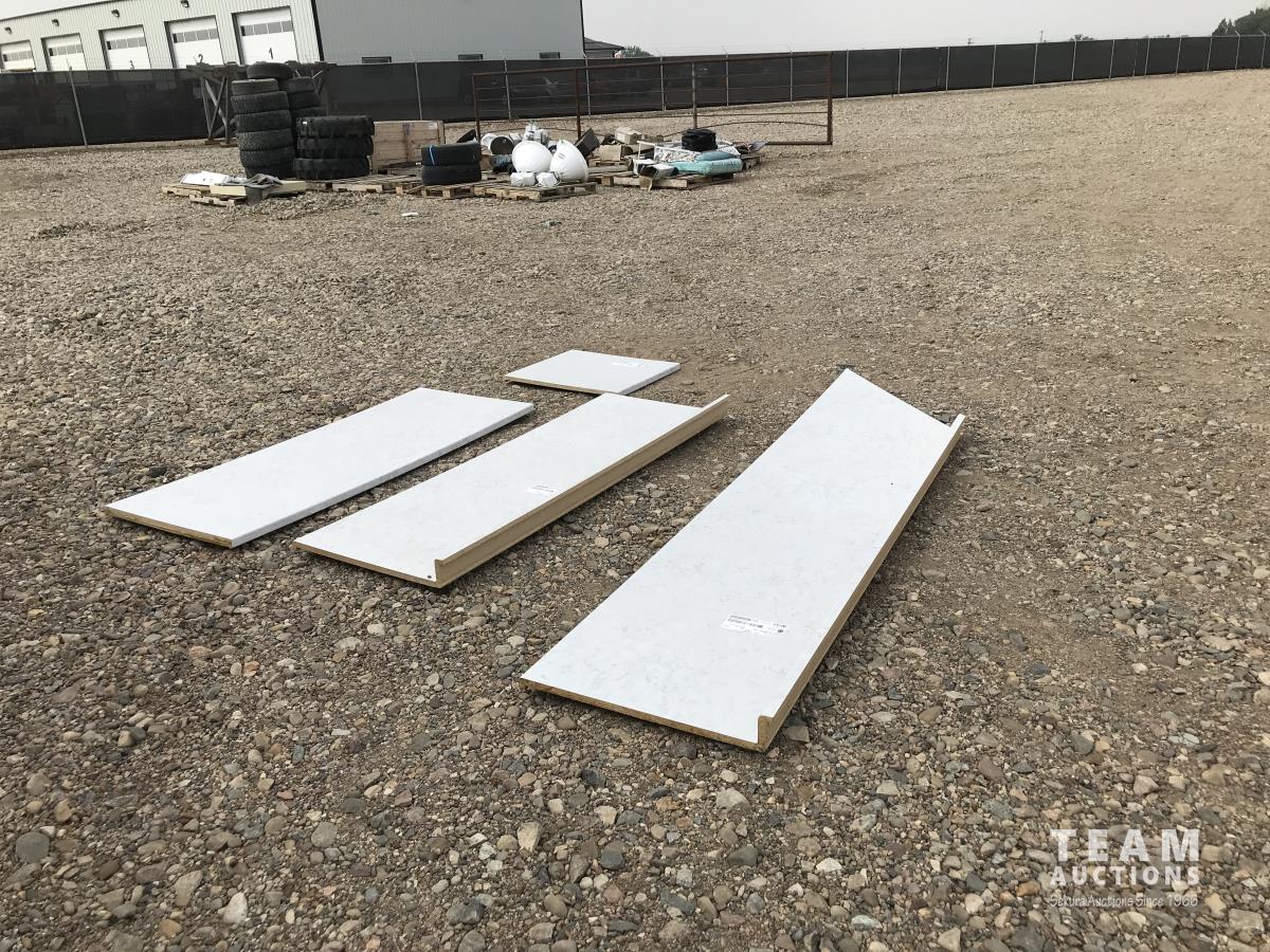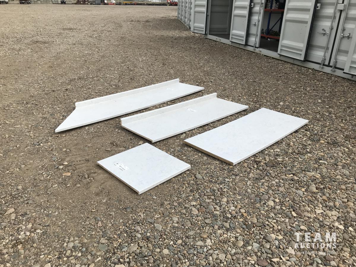 (1) countertop at 87 inches, (1) countertop at 72 inches, (1) island countertop at 24 inches, (1) island countertop at 65 inches