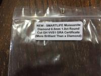 1435 6.5 mm 1.0 Ct Round Cut Moissanite Diamond (Unused)