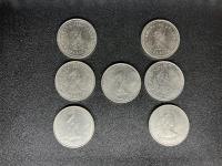 Seven silver dollar coins