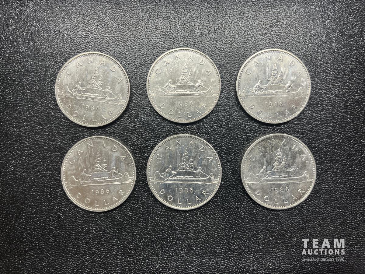 1535 (6) 1986 Canadian Silver Dollar Coins