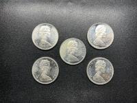 Set of five Canadian silver dollars