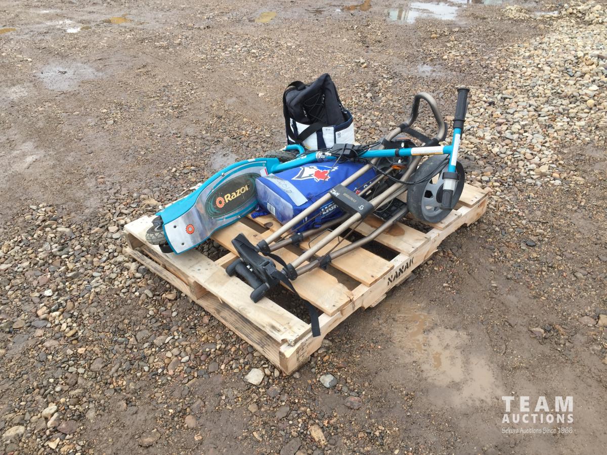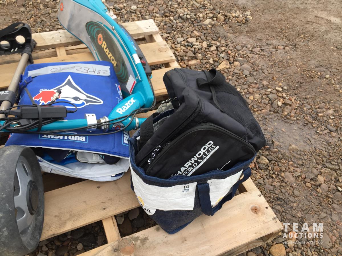 1350 Dynatour Wheeled Golf Caddy, Assorted Cooler Backpacks/Bags w/ Razor Electric Scooter