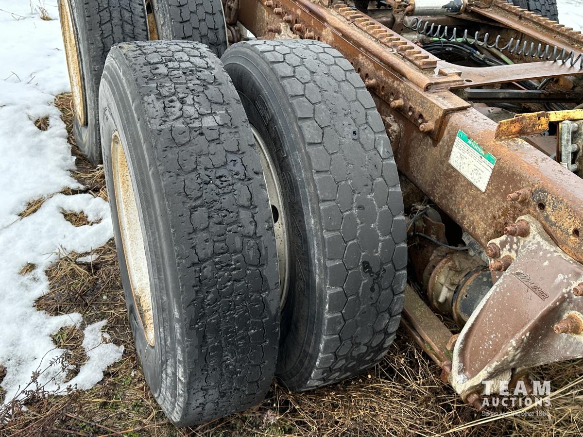 air ride suspension, 12,000 lb front axle, 40,000 lb rear axles, 3 way diff locks, 11R22.5 tires