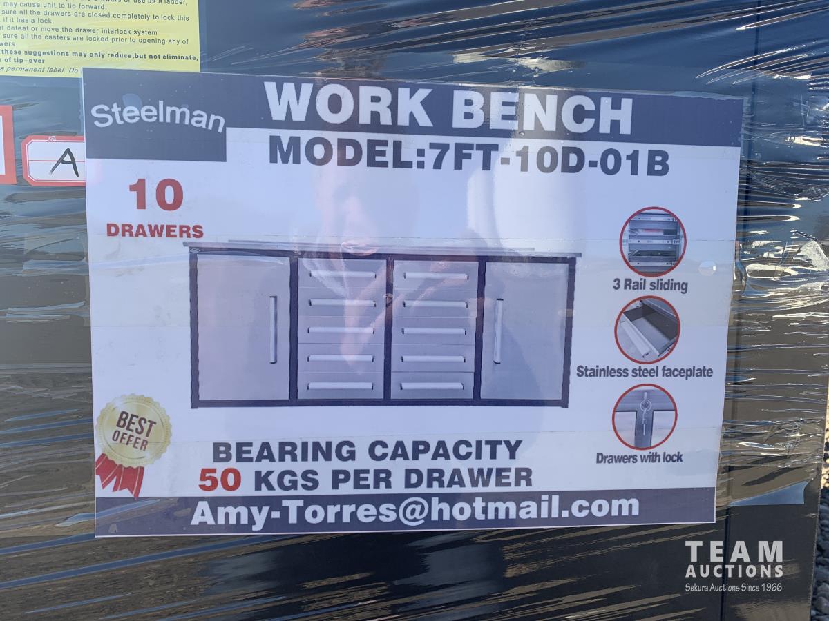 155 2023 Steelman 7FT-10D 7 Ft SS Garage Cabinet Workbench (Unused)