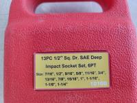 1703 13 Piece 1/2 Inch Sq. Dr. SAE Deep Impact Socket Set (Unused)