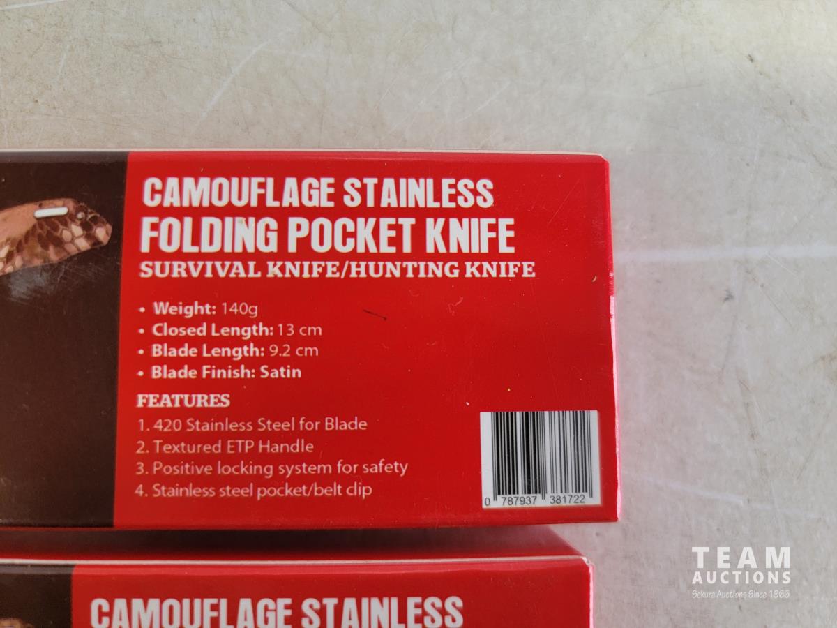 1724 (2) Camouflage Stainless Folding Pocket Knife (Unused)