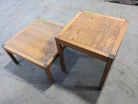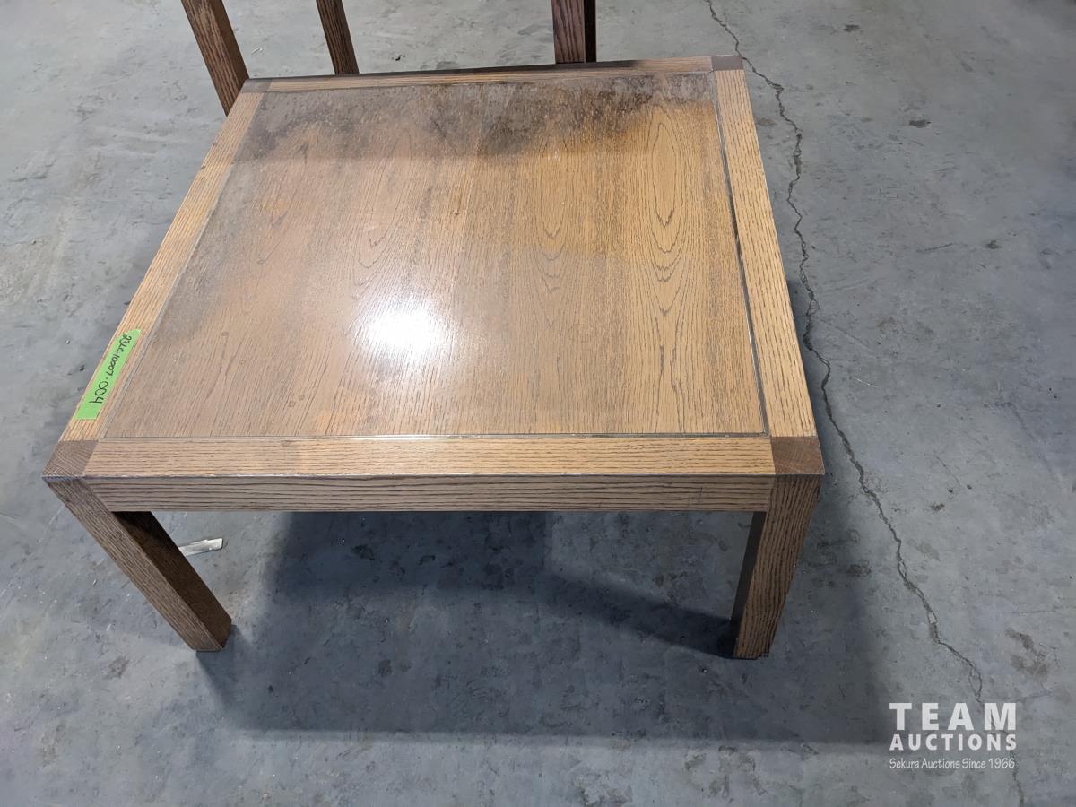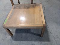 Coffee table: 30 inch l x 30 inch w x 16 inch h, side table: 23-1/2 inch l x 23-1/2 inch w x 26 inch h
