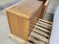(1) Krug locking cabinet 36 inch l x 20 inch d x 29-1/4 inch h, cabinet missing top 33-3/8 inch l x 23-3/4 inch d x 26-5/8 inch h