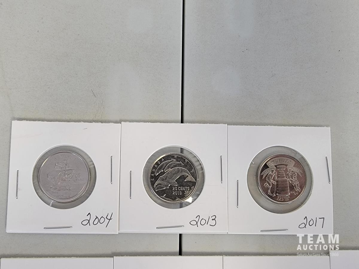 (3) Quarters, (5) dimes, (6) nickels and (15) pennies