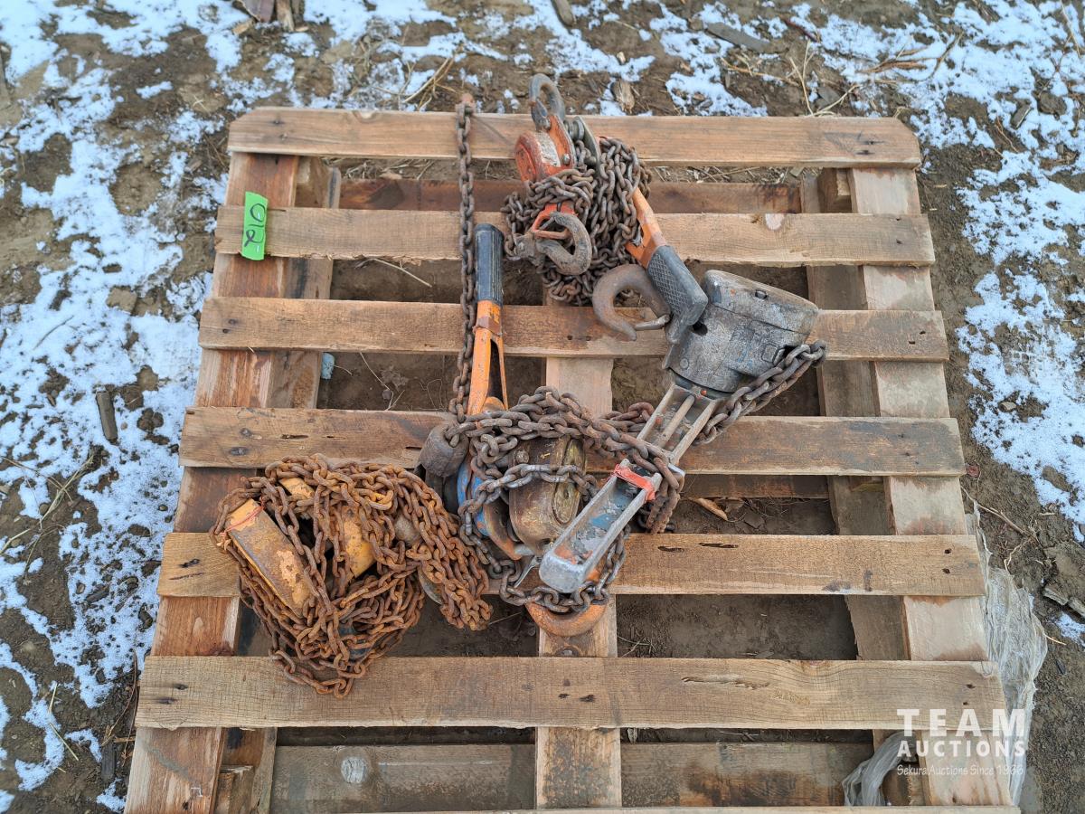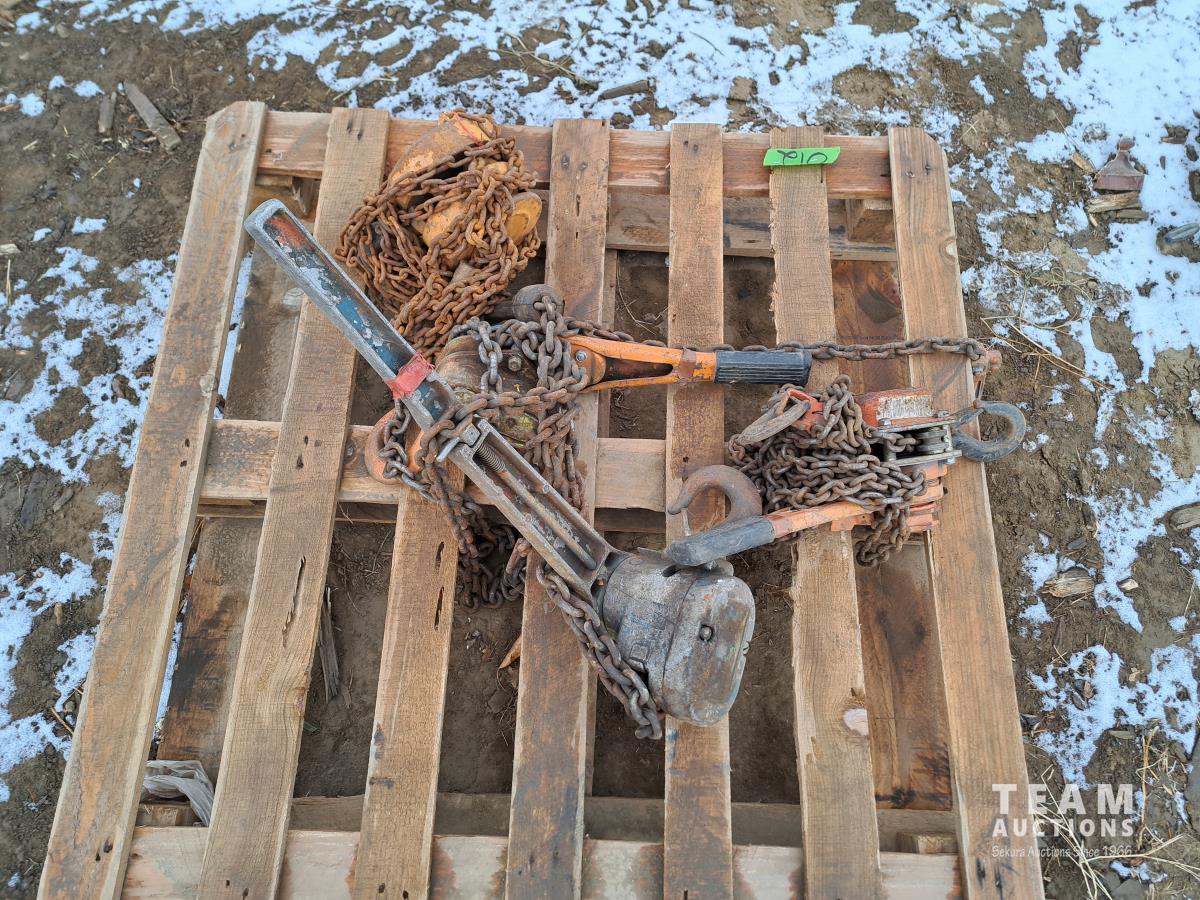 3/4 ton, 3 levered hoists, 1 chain hoists