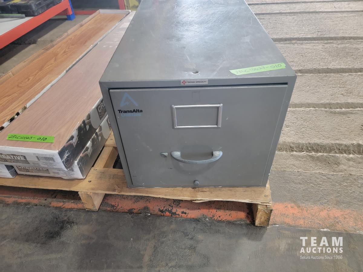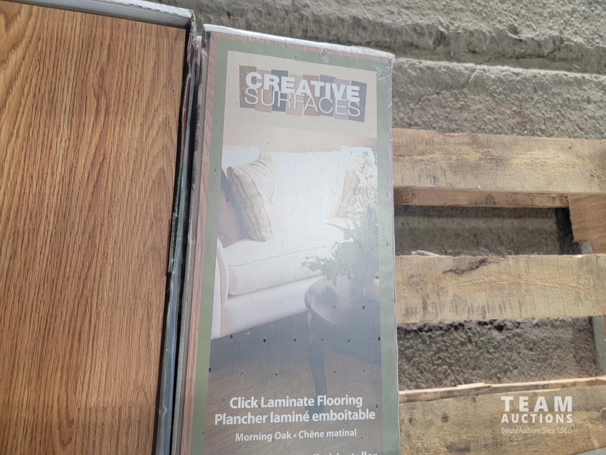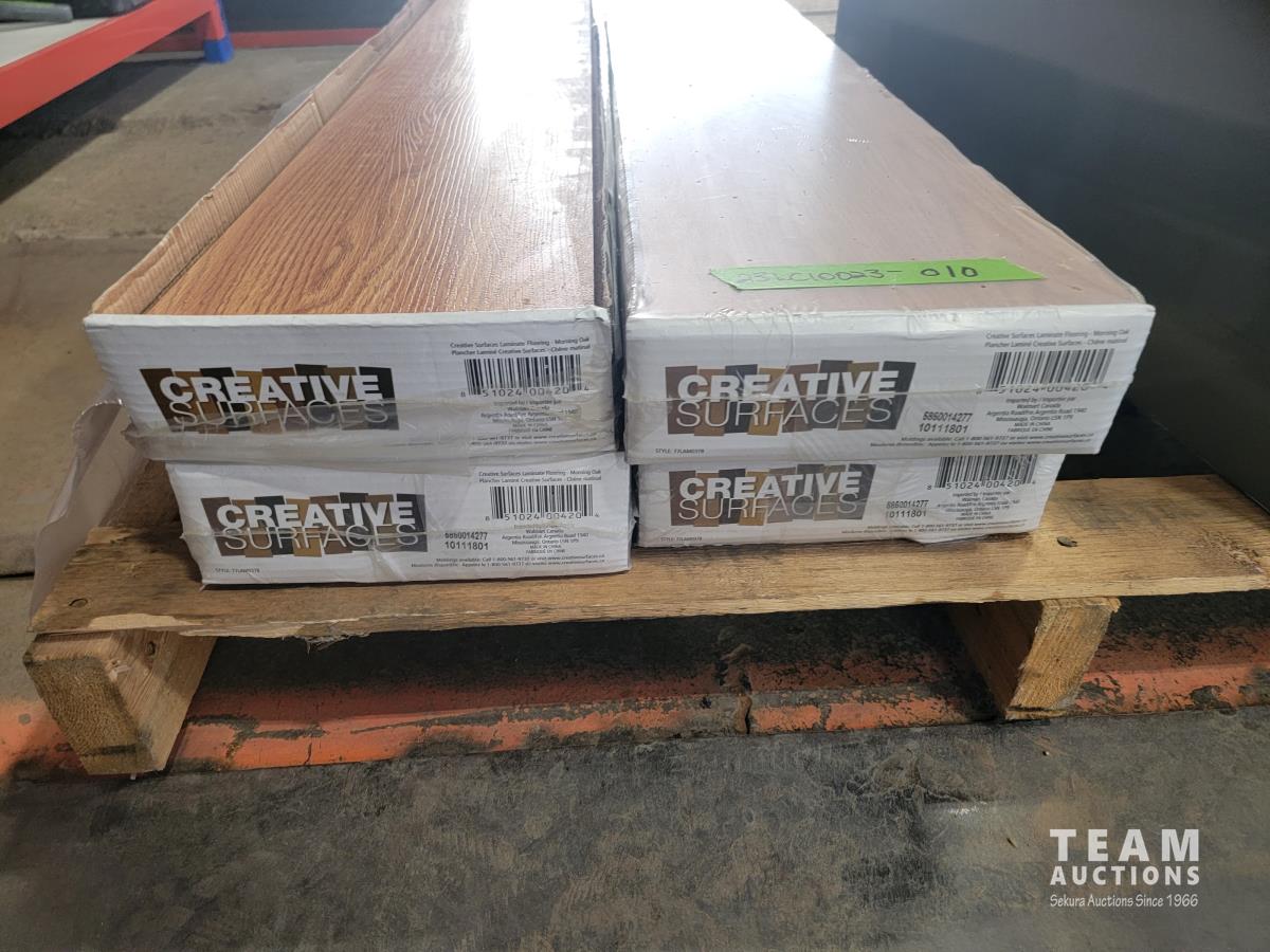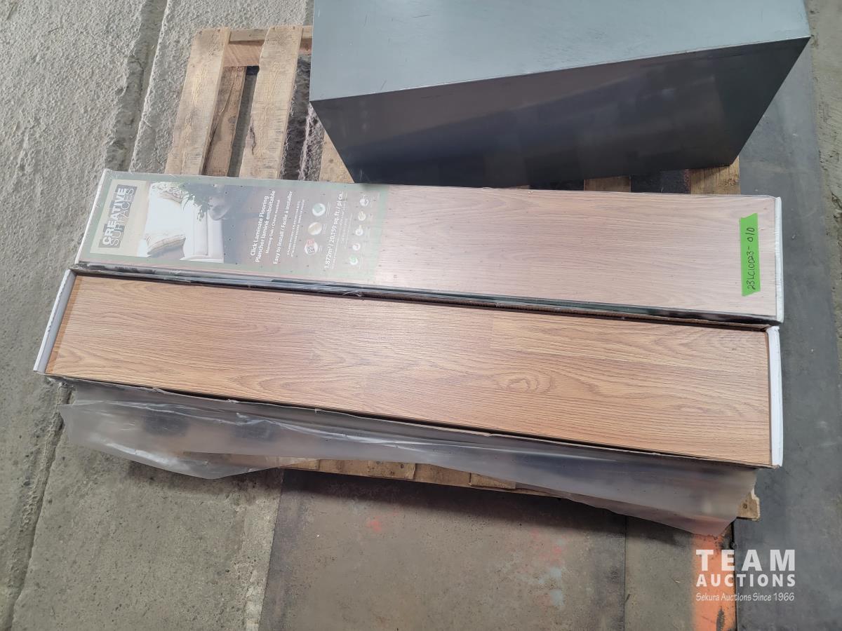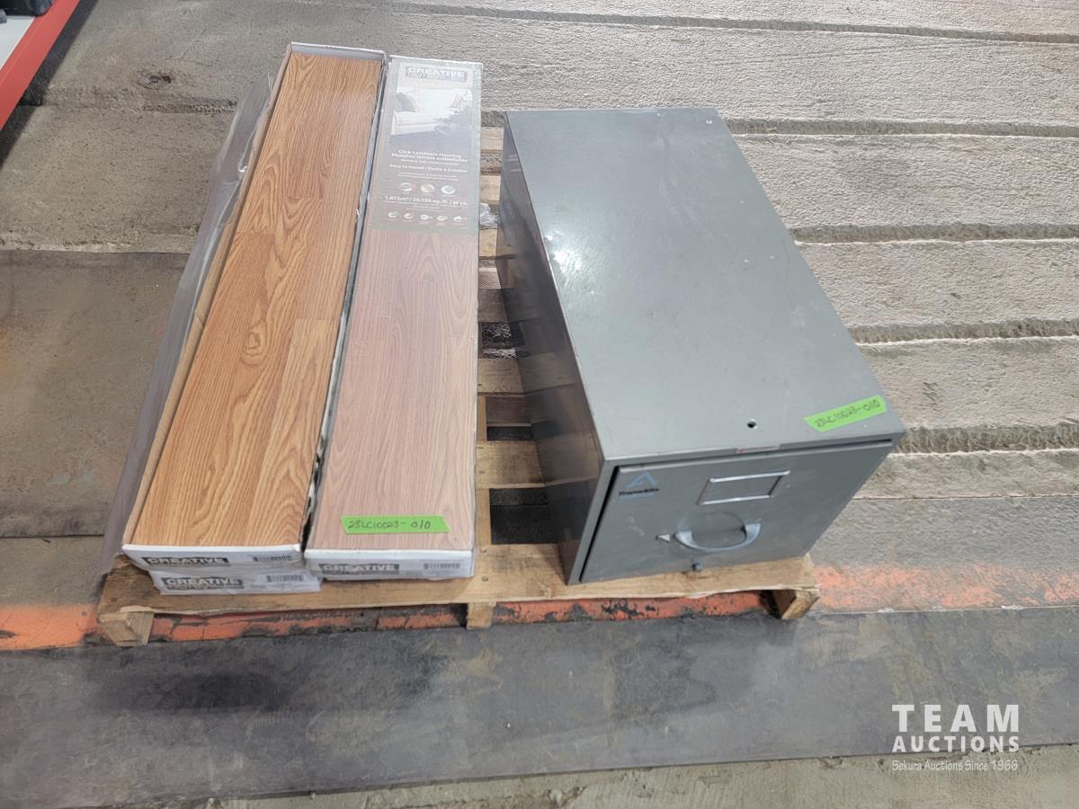 1111 (4) Boxes of Creative Surface Laminate Flooring- Morning Oak and Filing Cabinet