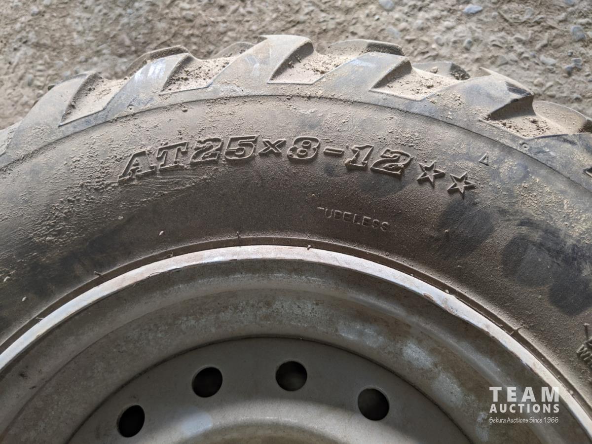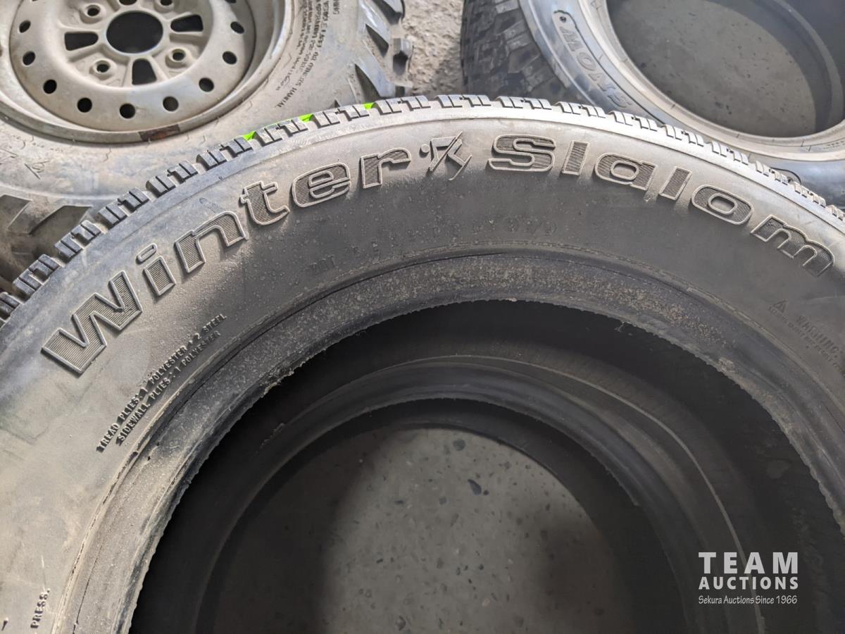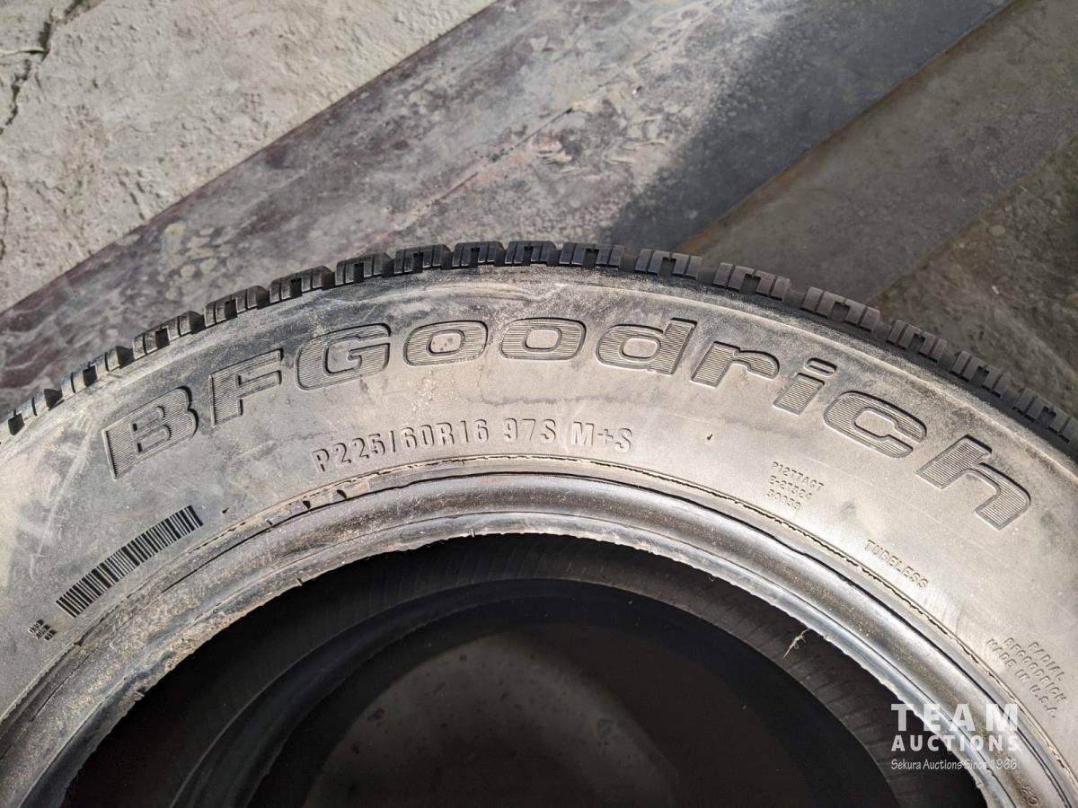 (2) BF Goodrich Winter Slalom 225/60R16 tires, (1) Interurban 215/75R14 tire, (1) Dunlop KT401c AT25X8-12 ATV tire on 4 bolt rim