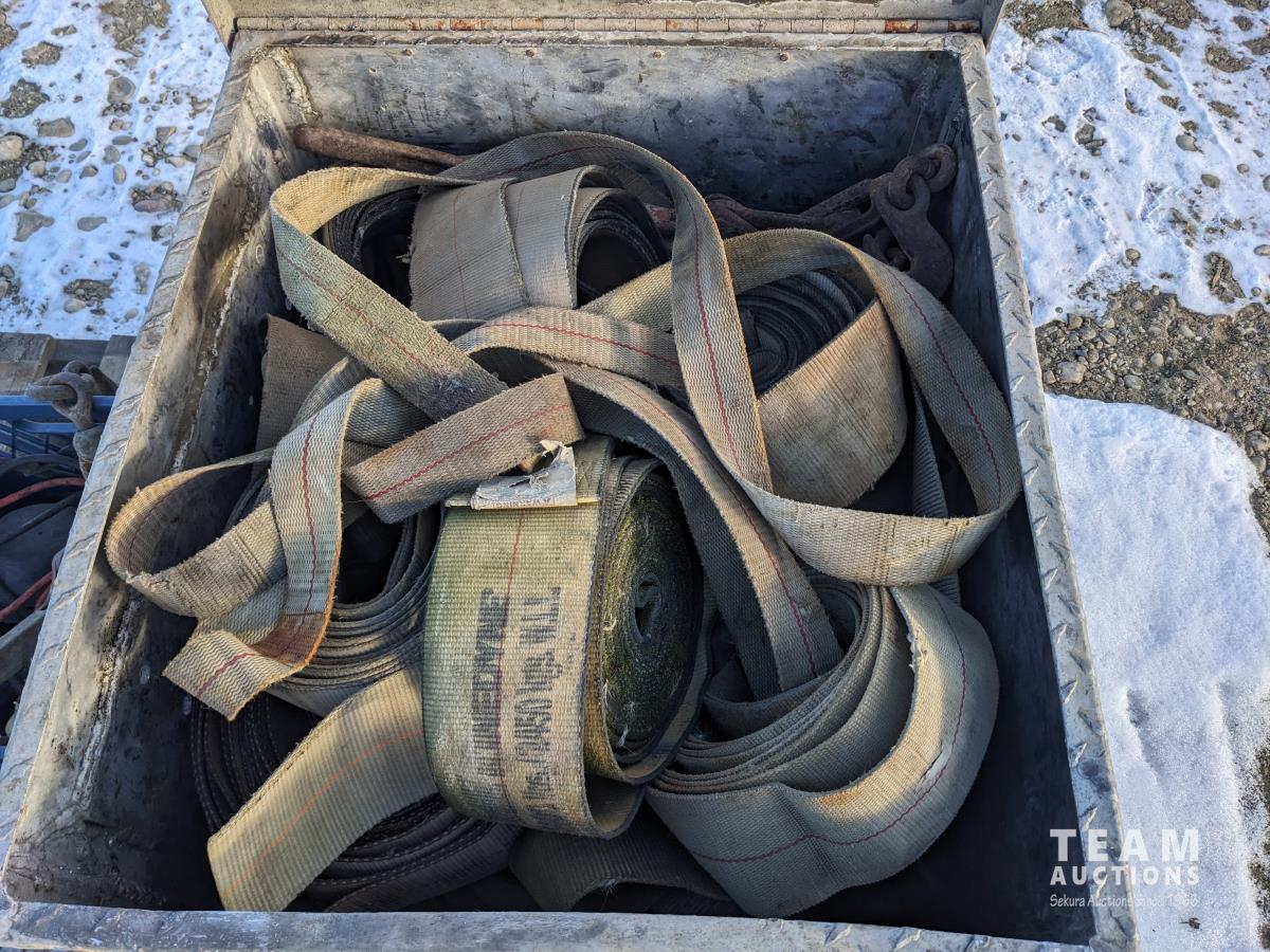 1900 Checker Plate Tool Box with Qty of Tire Chains