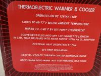 Keeps food warm or cold, operates on DC 12V or 110V, cools to 68-77F below ambient temperature, warms to +140F