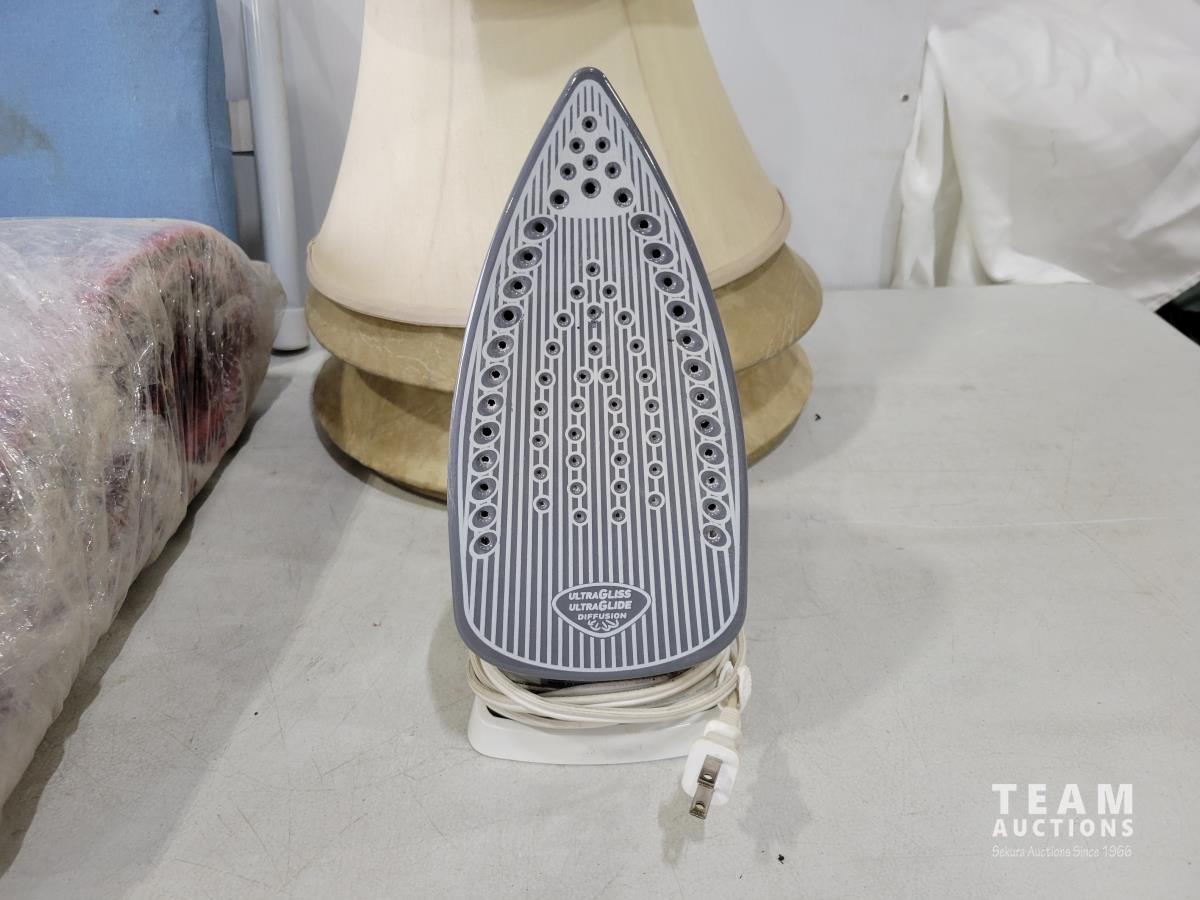 1086 Ironing Board, Iron, (5) Lamp Shades and Large Area Rug