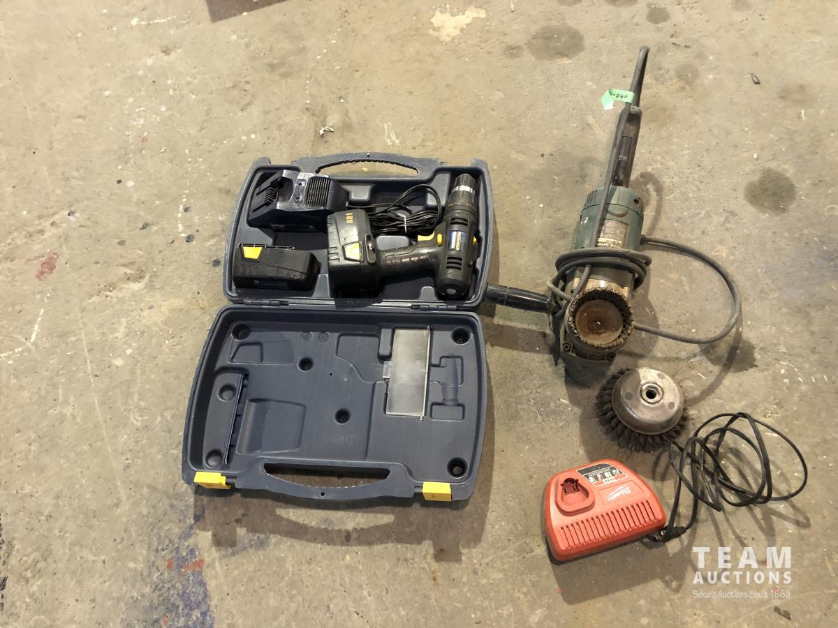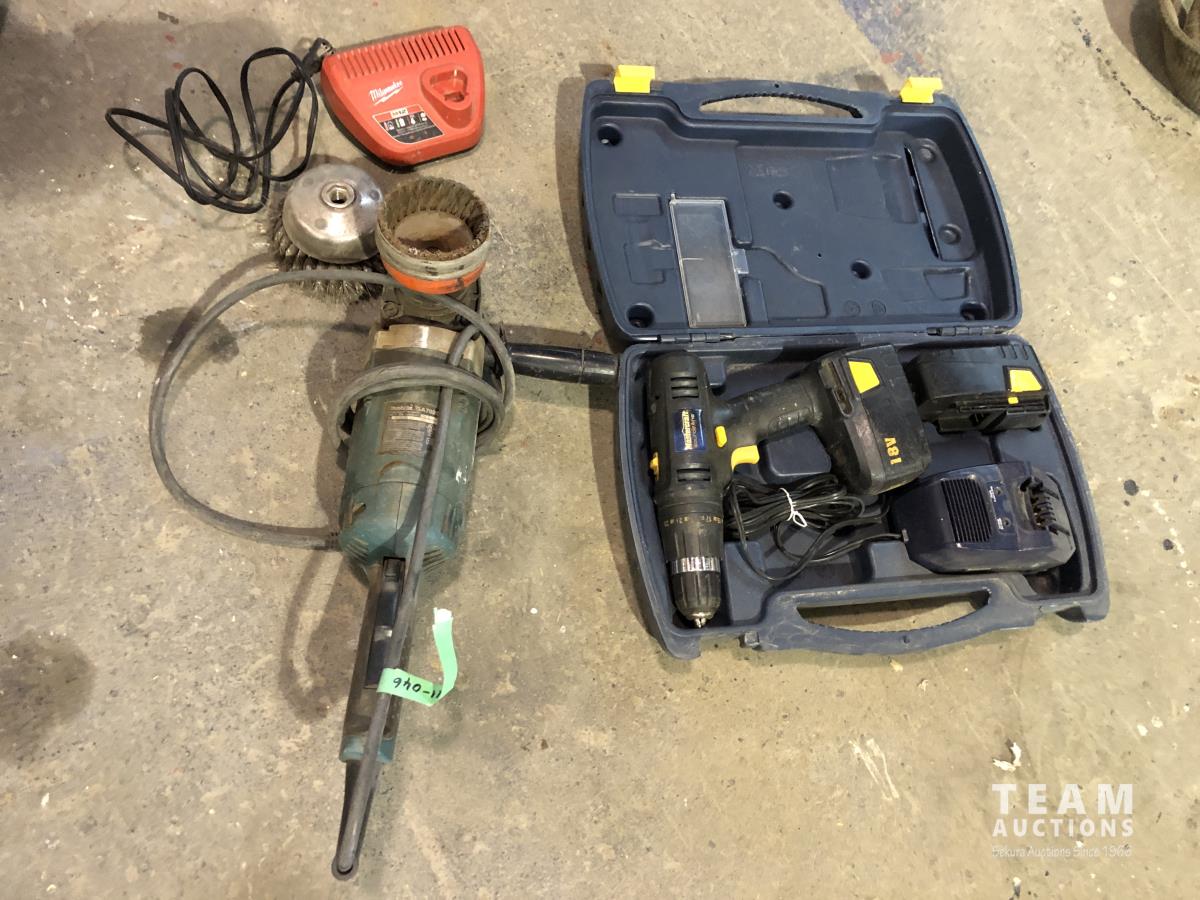 2001 Makita GA7020 Angle Grinder, Milwaukee M12 Charger, Mastercraft 18V Cordless Drill Set