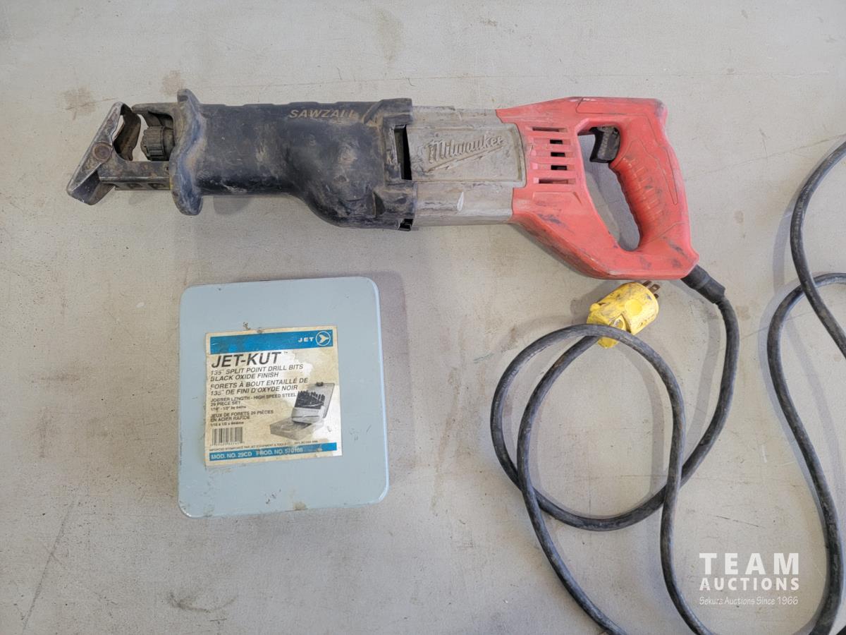 1626 Milwaukee Sawzall Reciprocating Saw and Jet-Kut 135 Split Point Drill Bits