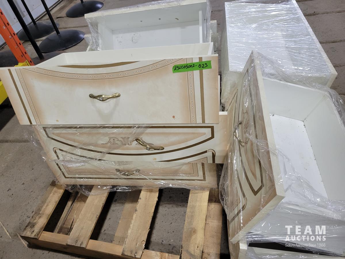 Cabinets, panels, footboard, drawers, mirror