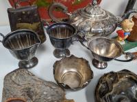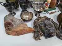 1395 Qty of Copper and Silver Items and (3) Vintage Face Wall Art