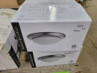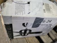 Ceiling fans, (2) flush mount light fixtures, peel and stick metal tiles, electric heater