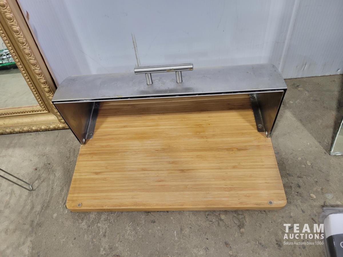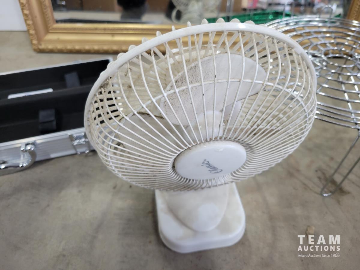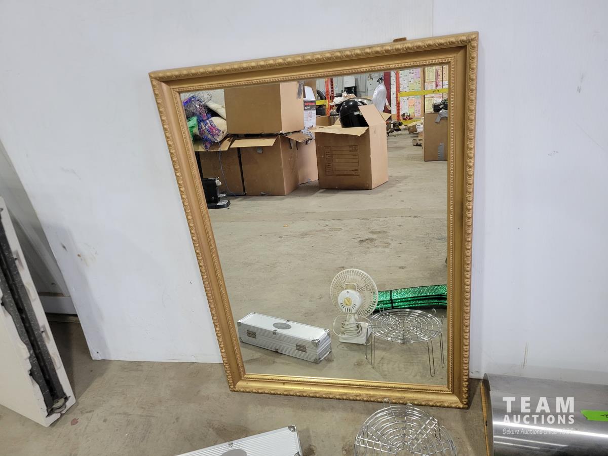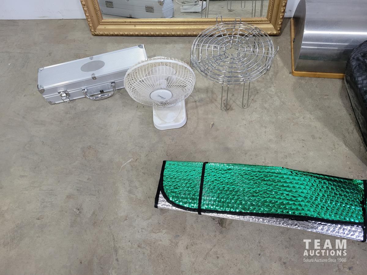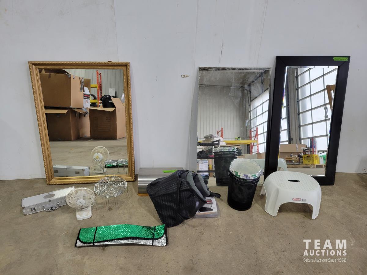(3) mirrors, step stool, (6) small garbage cans, sleeping bag, small fan, bread box