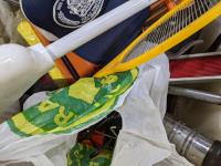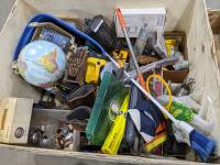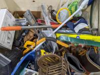 Sand saws, pipe wrench, ratchets, boots, levels, grease gun, electric stapler